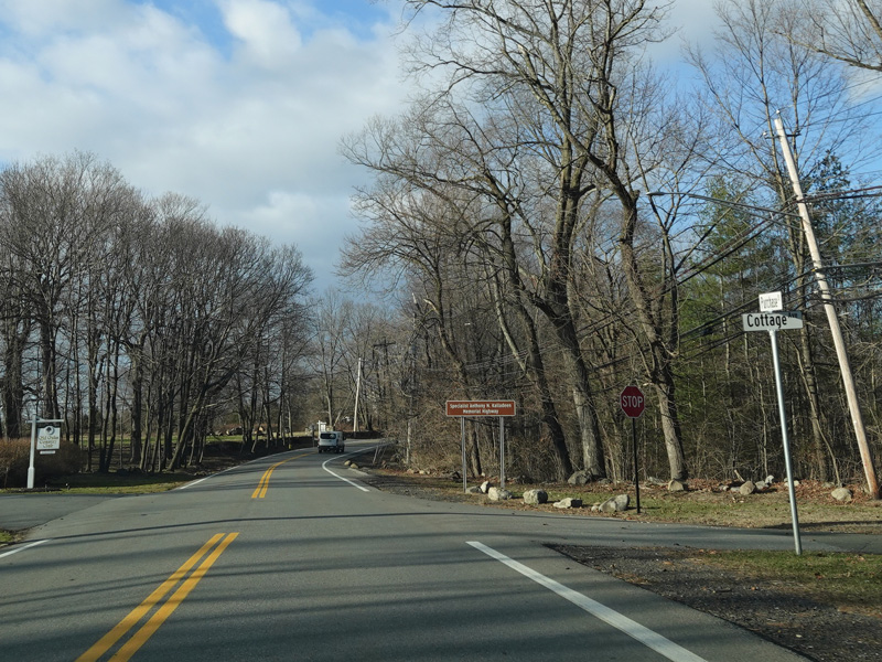 There is a traffic light at Anderson Hill Road (CR 18). Turn right to go east or left to go west.