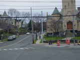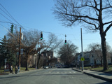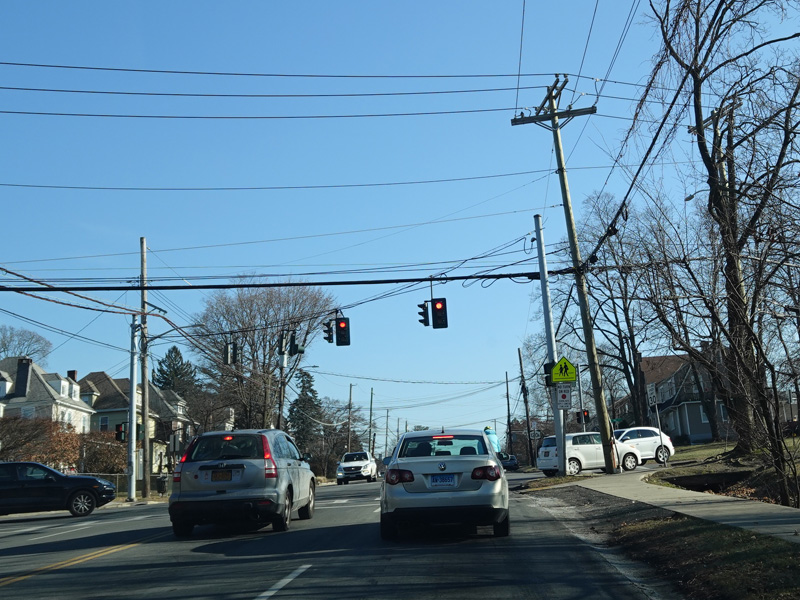 There is a traffic light at North Pearl Street. Turn left to stay on NY 120A. Westchester Avenue continues for another few blocks as CR 112.