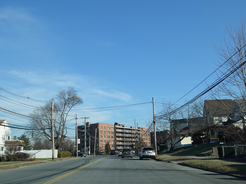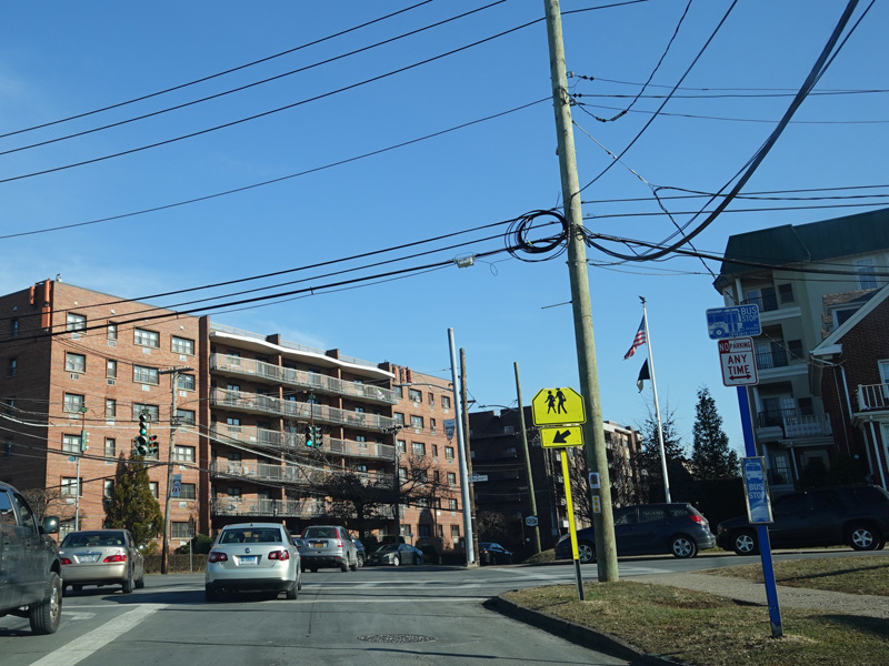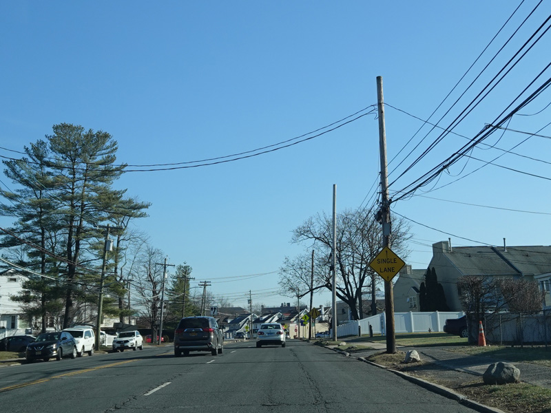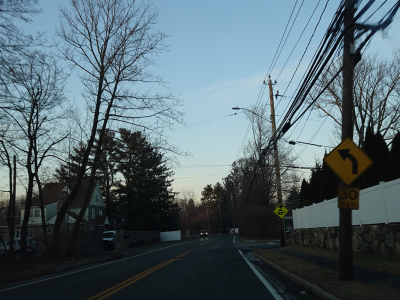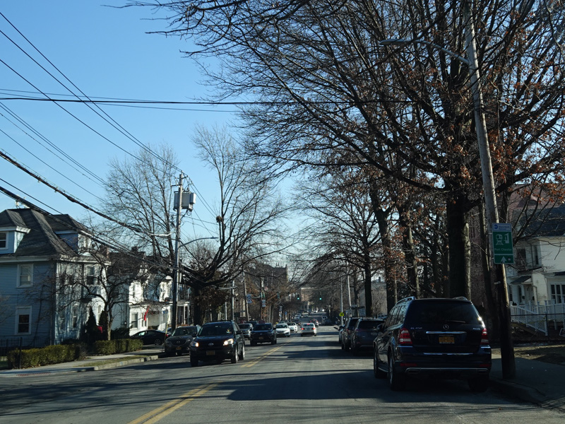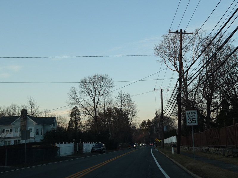 Westchester Avenue runs east as a two-lane undivided road into Port Chester.