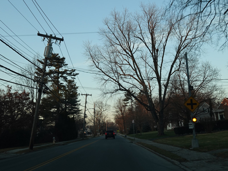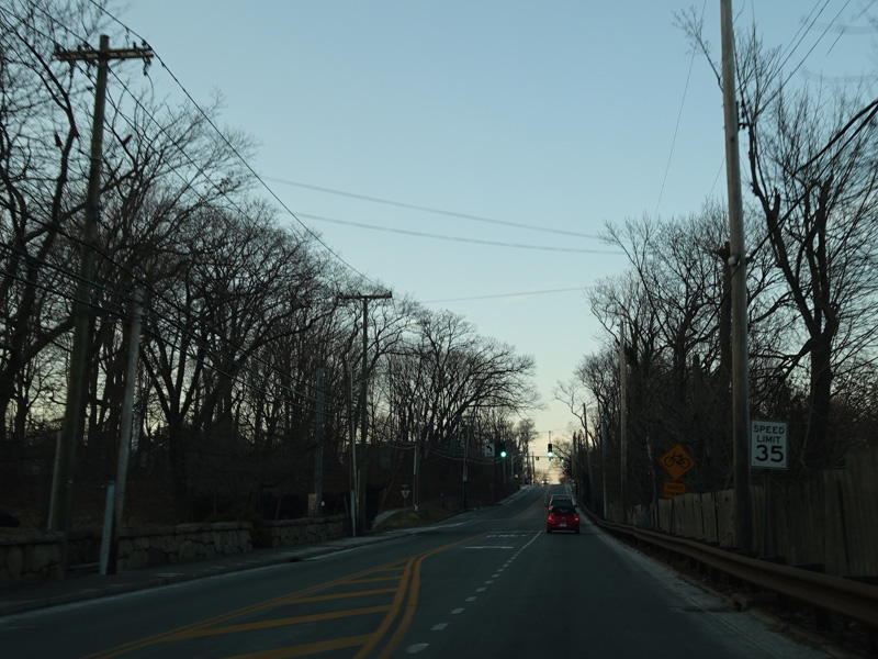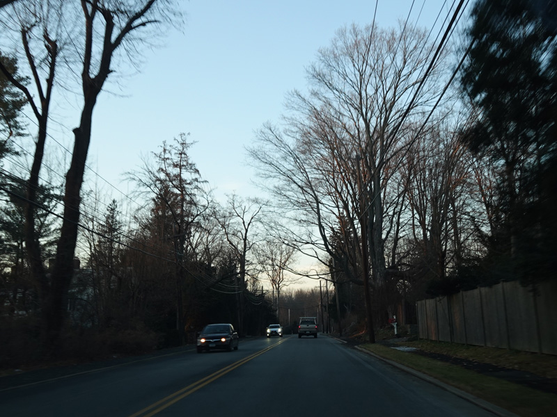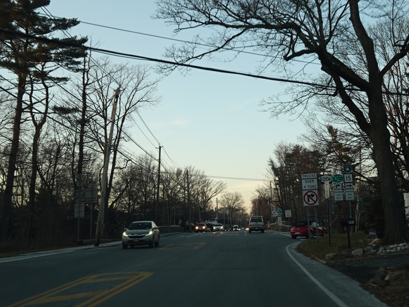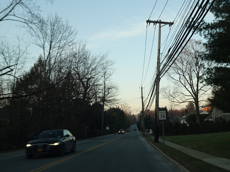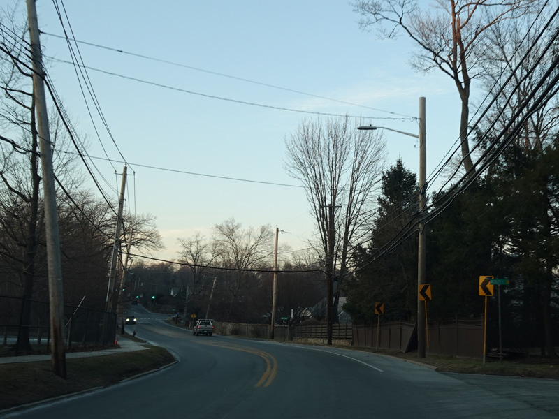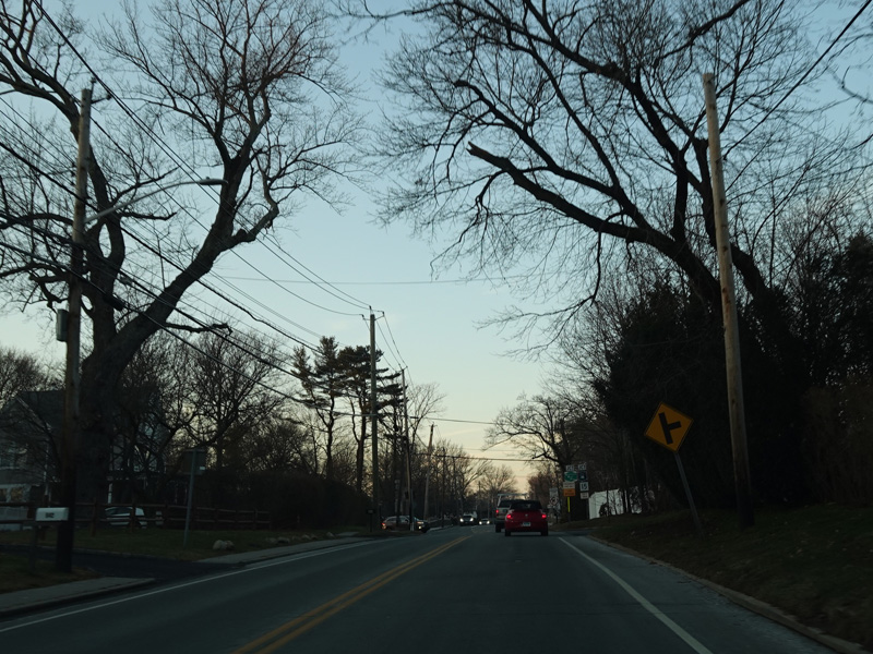 Westchester Avenue runs east as a two-lane undivided road into Port Chester.