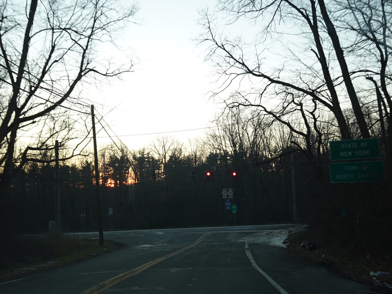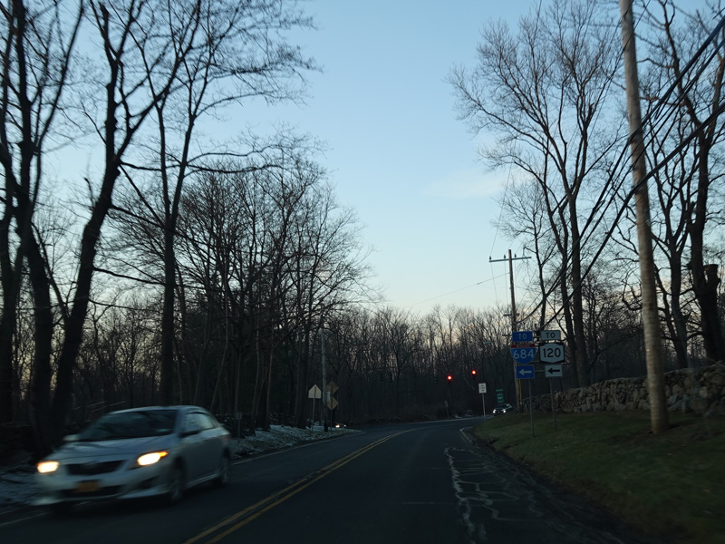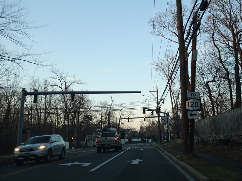 Welcome back to the State of New York and to the Town of North Castle! This signage is the only clue that anything interesting just happened in terms of crossing a state line. NY 120A ends at a traffic light at NY 120. Turn right to remain on King Street to go north. Turn left onto Purchase Street to go south.