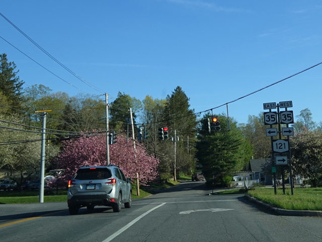 NY 121 is a north/south route in the northern half of Westchester County. It begins at Cantitoe Street (NY 22) and runs north through Cross River to North Salem, where it is multiplexed with NY 116 along Titicus Road. It then splits off and continues north into Putnam County. There is a partial interchange with I-84, and then it ends at US 6/US 202. The entire length is a two-lane undivided road.