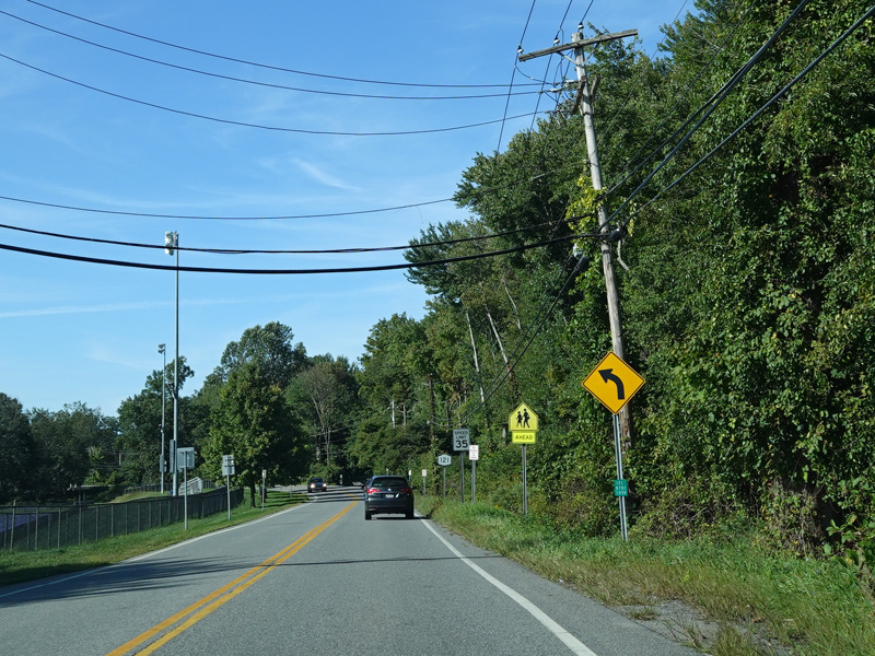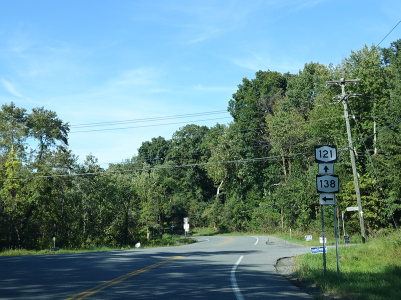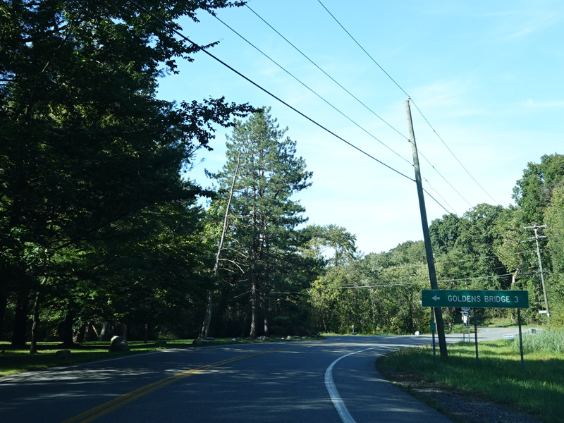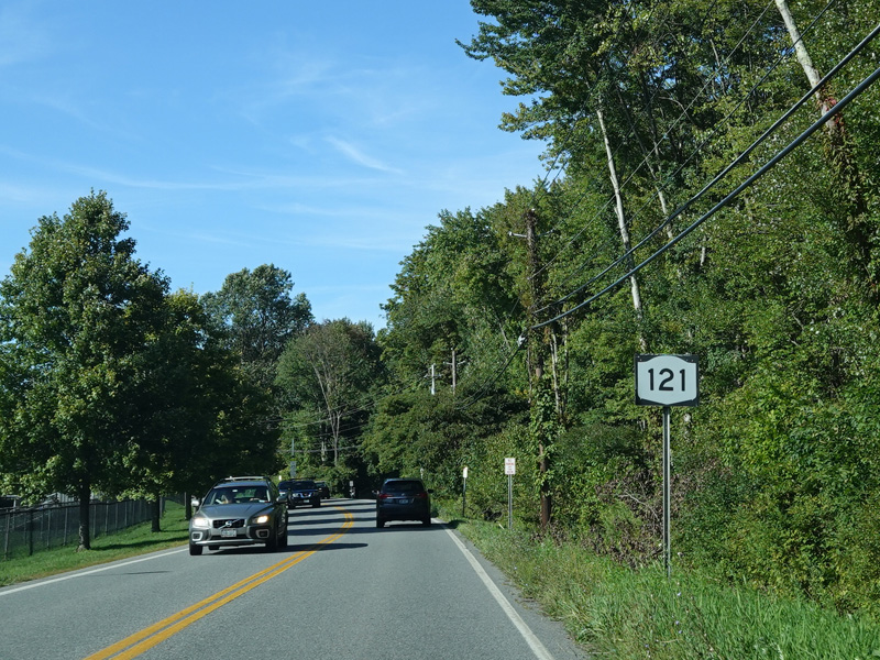 NY 121 splits off from Cross River Road (NY 35) and runs north as a two-lane undivided road. Here, it is known as North Salem Road.