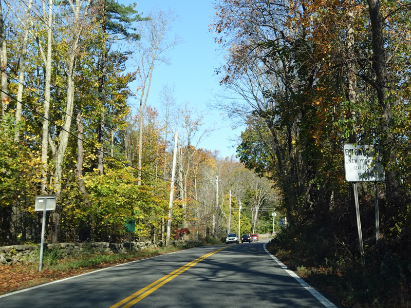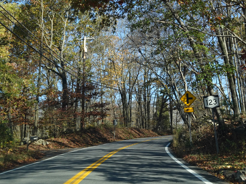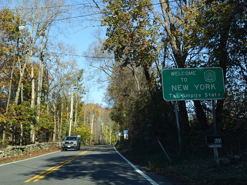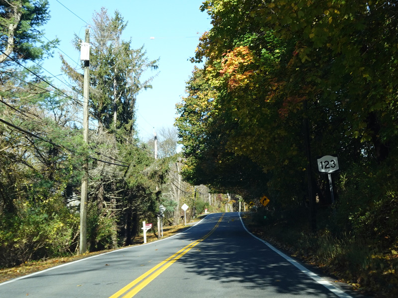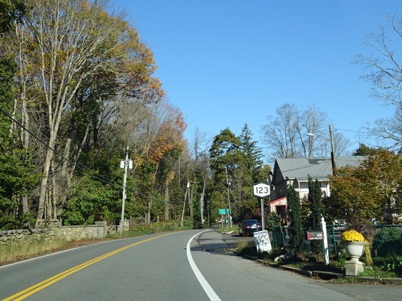 Welcome to New York, Westchester County, and the Town of Lewisboro! Smith Ridge Road changes designation from CT 123 to NY 123 at the state line.
