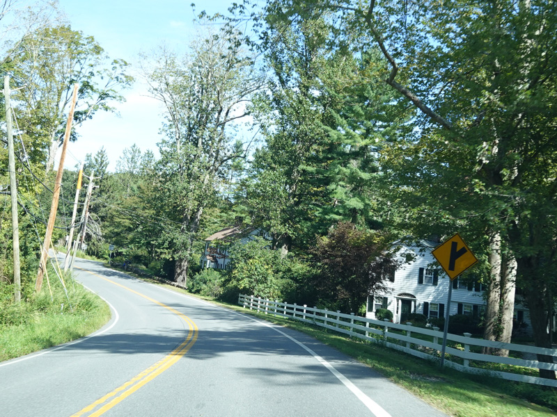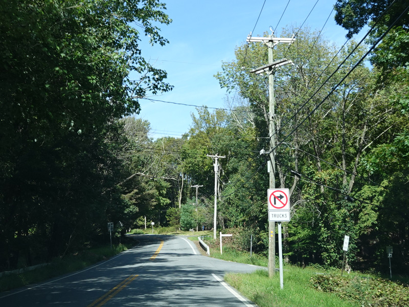 Salem Road begins at NY 137 at the point where it turns west onto Stone Hill Road in Pound Ridge. It runs north as a two-lane undivided road.