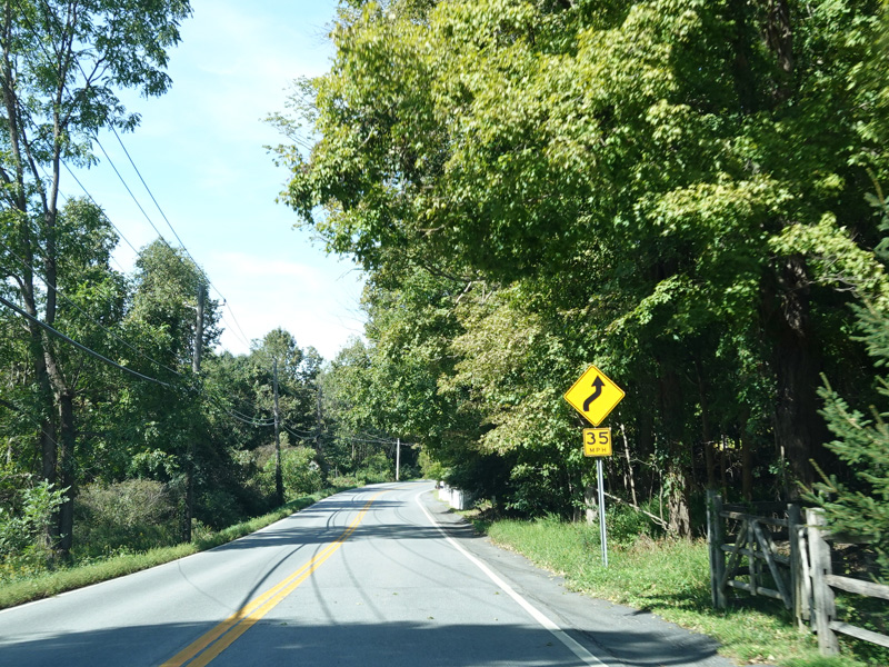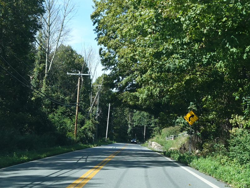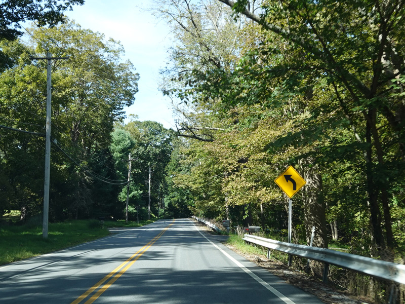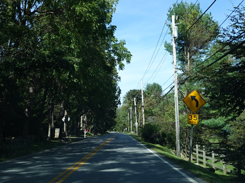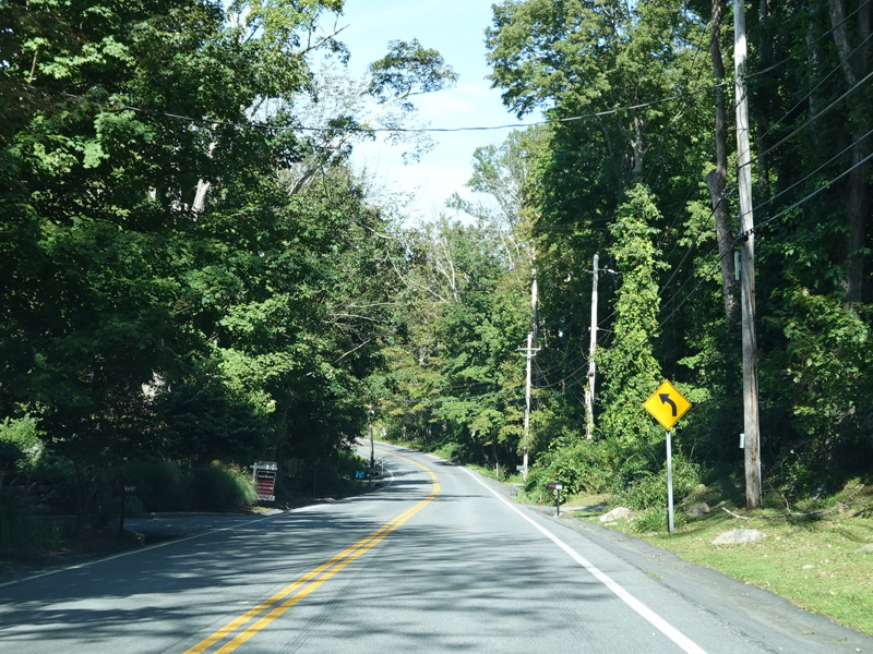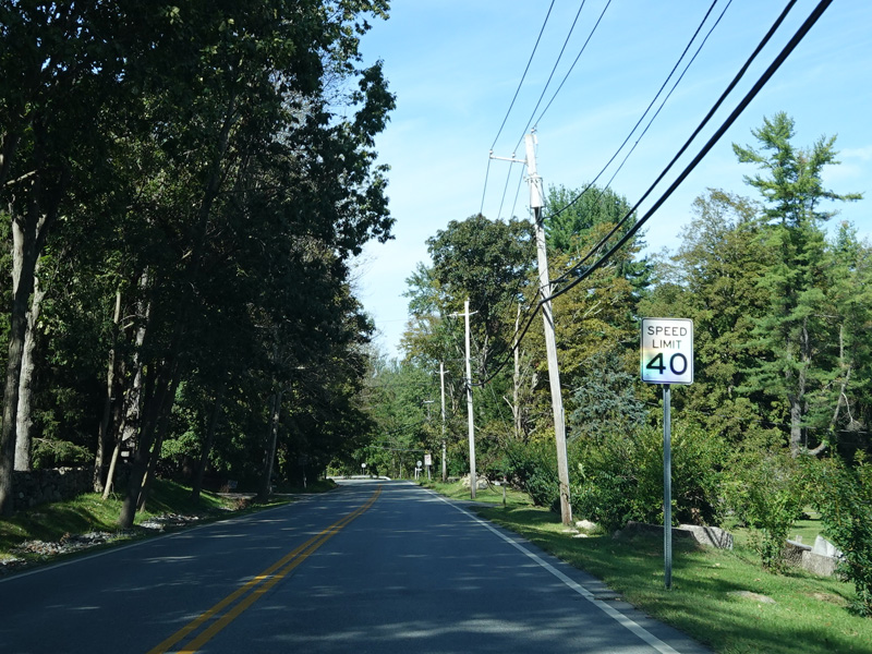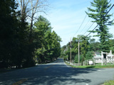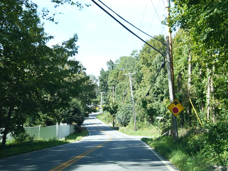 Spring Street runs west for a short distance and then curves to the north to end at a stop sign at Old Post Road (NY 35).