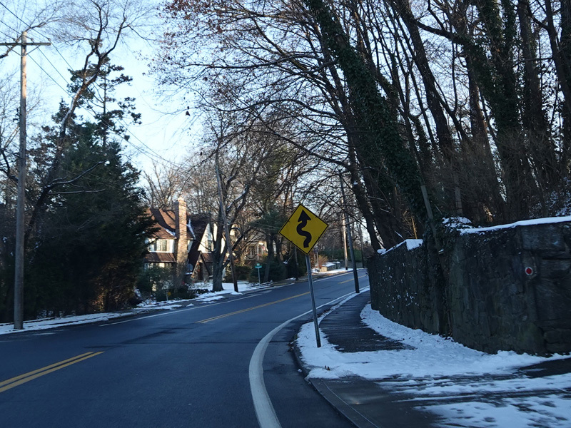 Weaver Street runs south as a two-lane undivided road. It is very curvy and presumably takes it name from how it weaves back and forth.