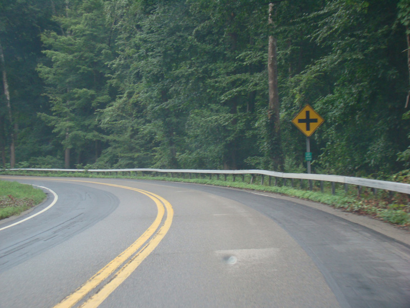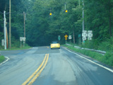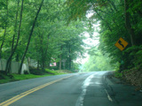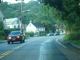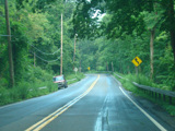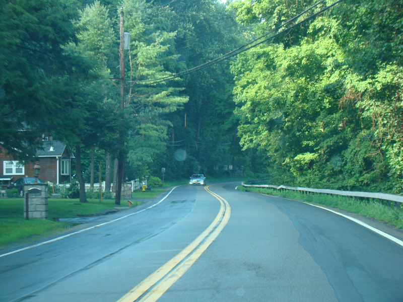 Croton Lake Road ends here at Saw Mill River Road (NY 118). The intersection is controlled by a flasher. Continue straight ahead to go south or turn left to go north.