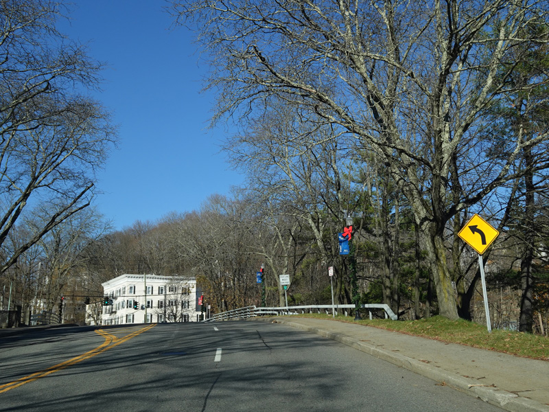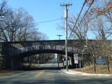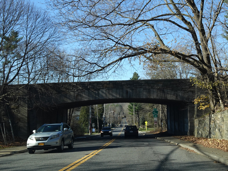An overpasses carries East Main Street over the Harlem Line of the Metro-North Railroad. On the over side, it changes names to become West Main Street.