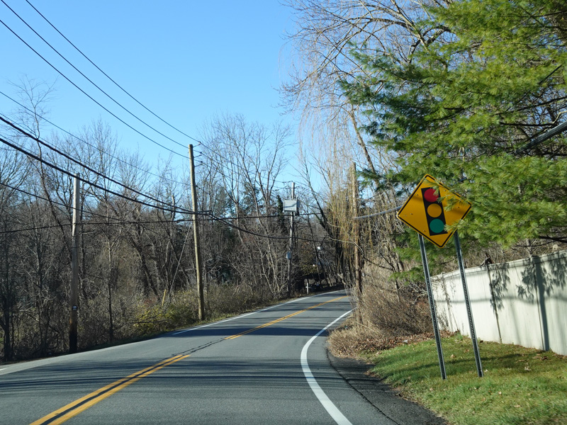 There is a traffic light at NY 120. Turn left onto Quaker Street to go south. Continue straight ahead on Millwood Road to go north and to stay on NY 133.