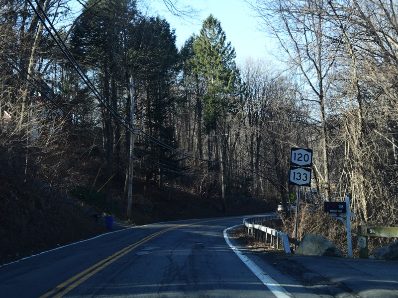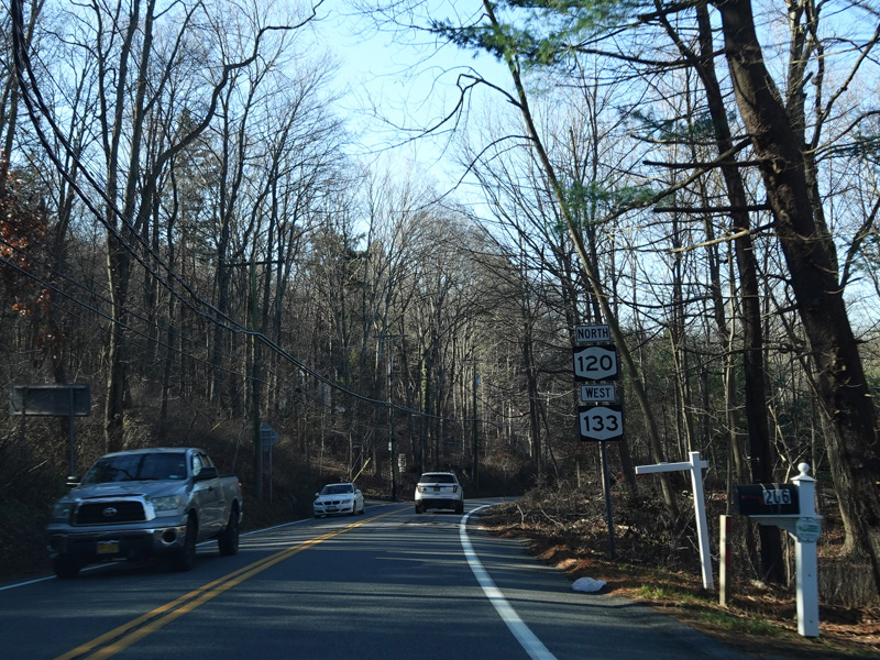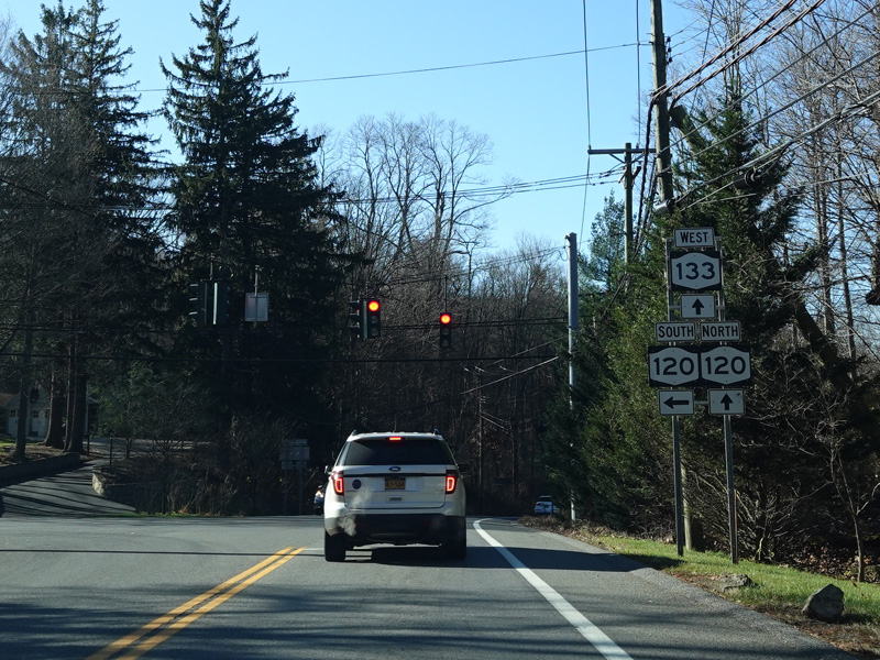 NY 120 is multiplexed with NY 133 along Millwood Road.