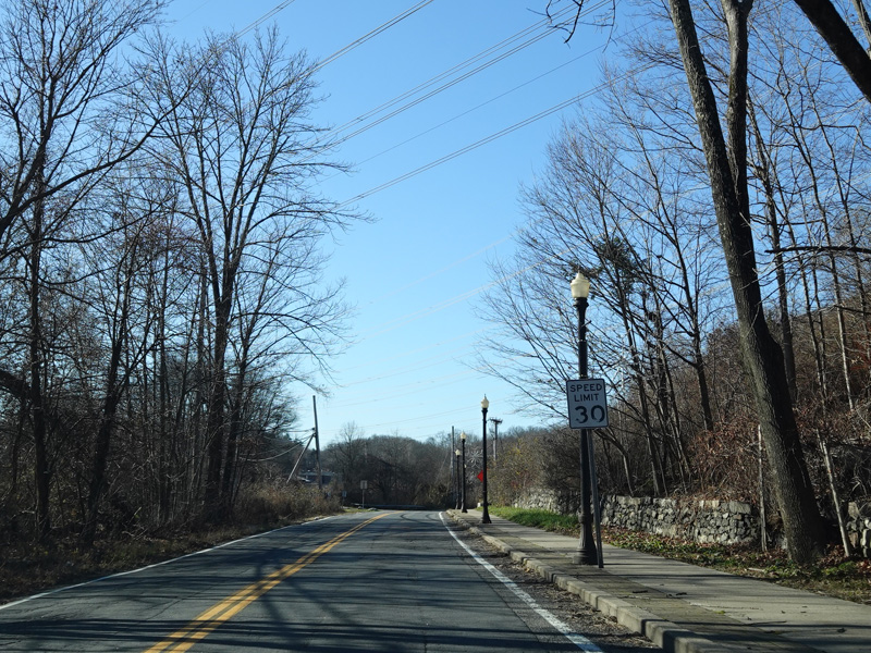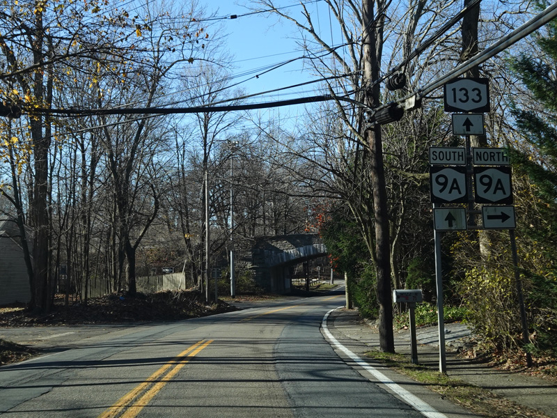 On the other side of the parkway, NY 133 splits off from Saw Mill River Road (NY 100). Here, it is known as Somerstown Road.