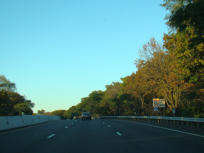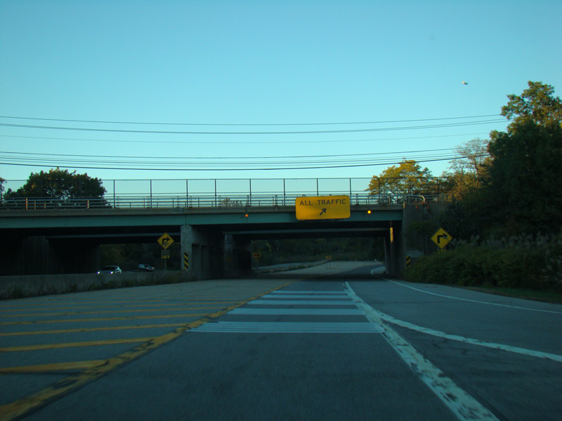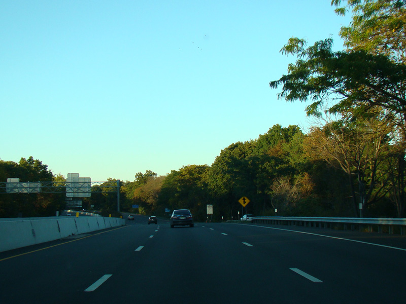 Exits 14E-W are for Jericho Turnpike (NY 25). After exit 14E, the expressway narrows down to one lane and becomes the exit ramp for exit 14W.
