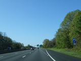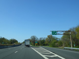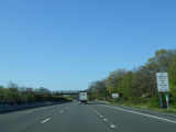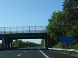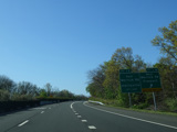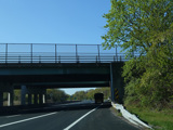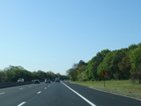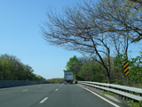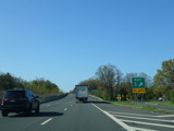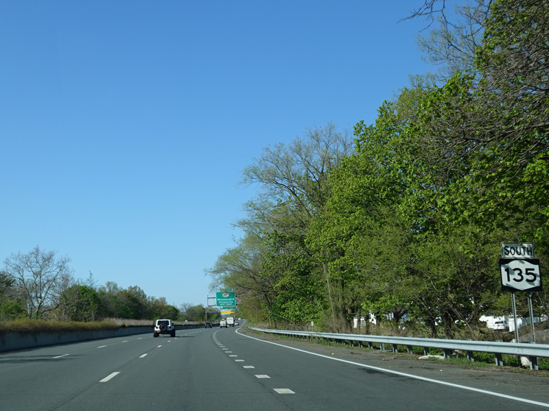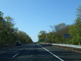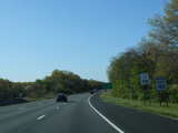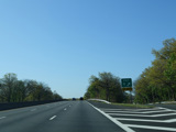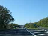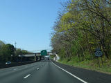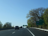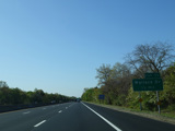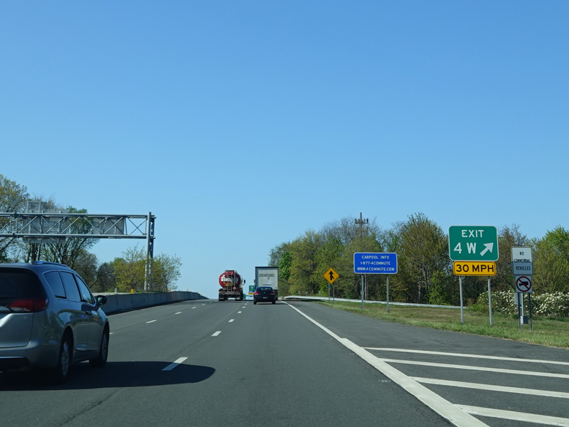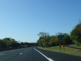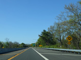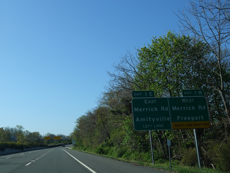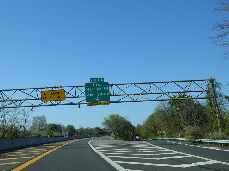 Exits 1W-E are for Merrick Road (CR 27). The expressway ends here and all vehicles that do not use exit 1W are forced onto the ramp for exit 1E. The road was supposed to continue, curving to the southwest to end at the Wantagh Parkway and provide access to Jones Beach. Based on the way that the pavement and divider end at a fence, it is clear that this road was not supposed to end here.