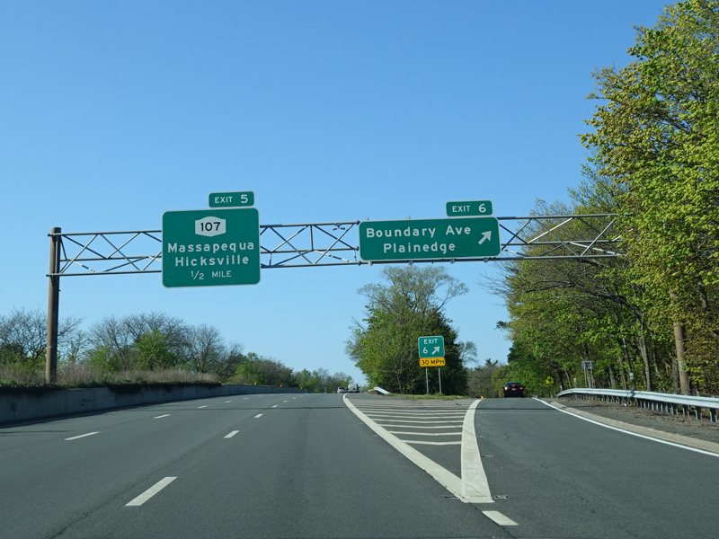 Exits 13W-E are for the Long Island Expressway (I-495). Exit 12E is for the Northern Parkway east. Motorists wishing to go west on the parkway must take the expressway and cross over at exit 42.