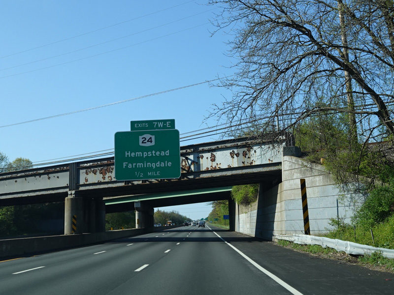 Exits 7W-E are for Hempstead Turnpike (NY 24).