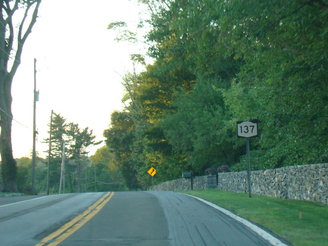 NY 137 is an extension of CT 137 north into New York. High Ridge Road changes designation from CT 137 to NY 137 at the state line. After about a mile, High Ridge Road ends at Westchester Avenue, the extension of CT 124 into New York, which is an unnumbered town road south of this point, although it was once a state route many years ago. NY 137 follows Westchester Avenue north to Pound Ridge, where it turns west onto Stone Hill Road. It runs west for a couple of miles to end at Old Post Road (NY 121) in Bedford.