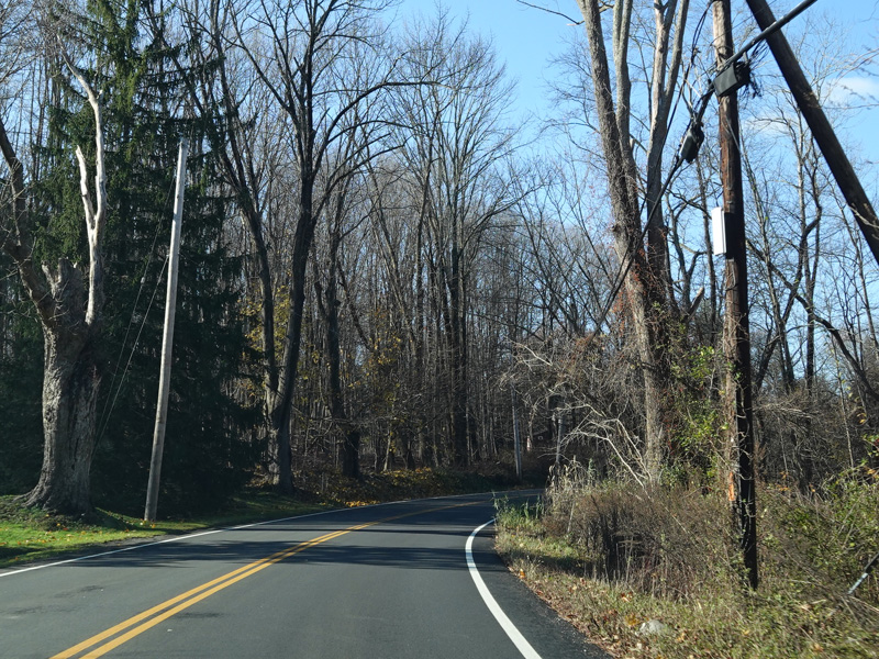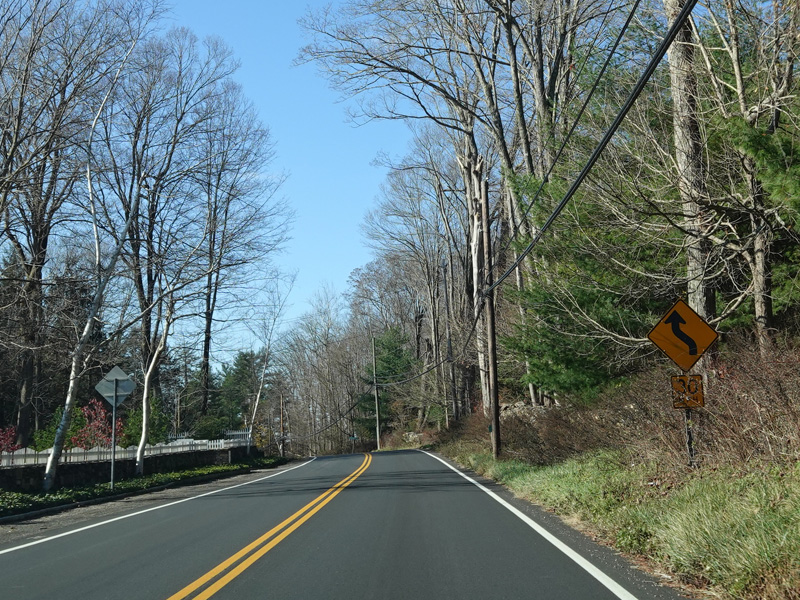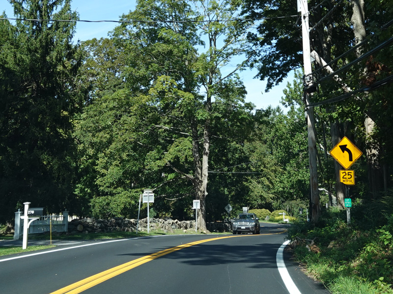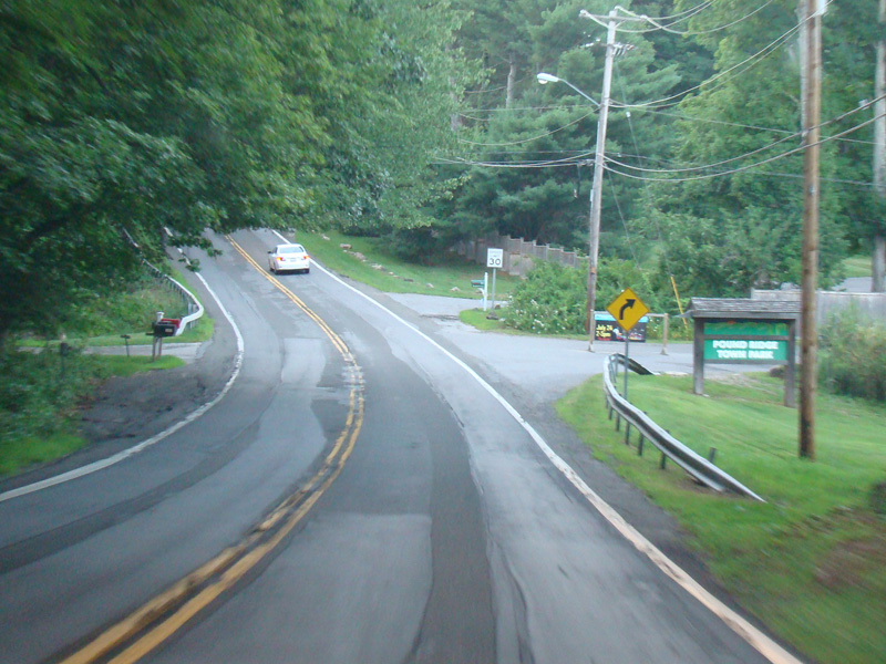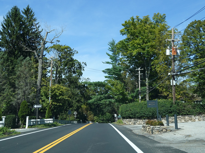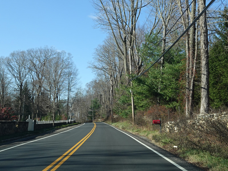 Welcome to Pound Ridge! Westchester Avenue runs north as a two-lane undivided road.