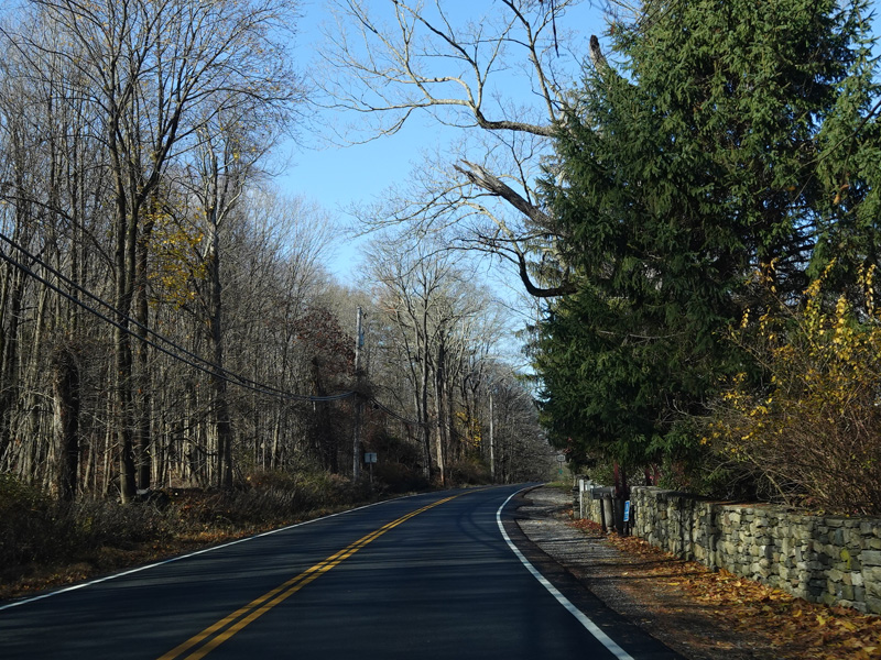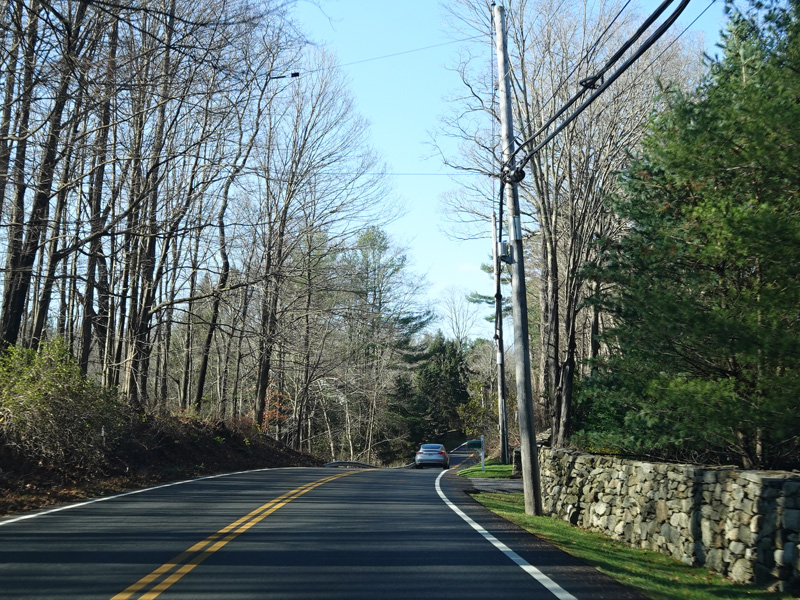 Stone Hill Road ends at a stop sign at Old Post Road (NY 121). Turn right to go north or left to go south.