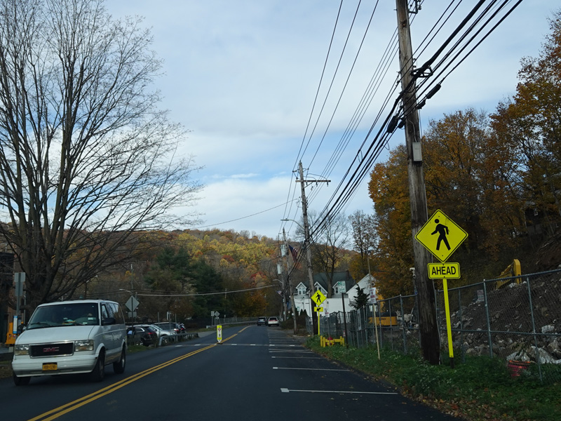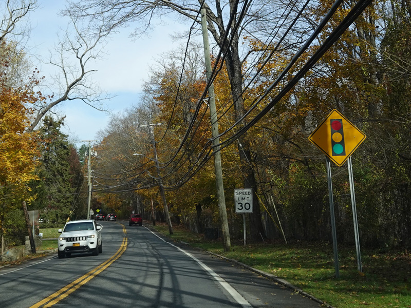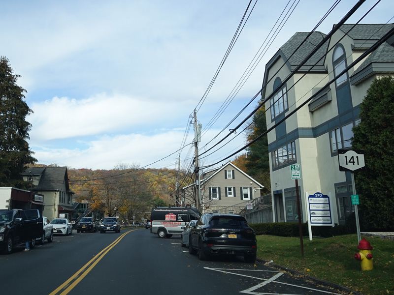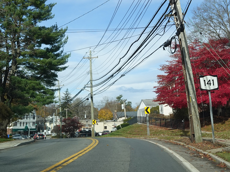 Broadway ends at a stop sign at Elwood Avenue. Turn left to stay on NY 141. Route signage here could use some improvement.