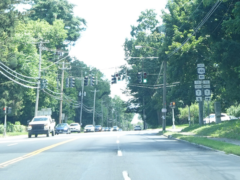 There is a traffic light at Balltown Road. Turn left to stay on NY 146. Union Street continues east as a reference route for a short distance to end at Troy-Schenectady Road (NY 7).