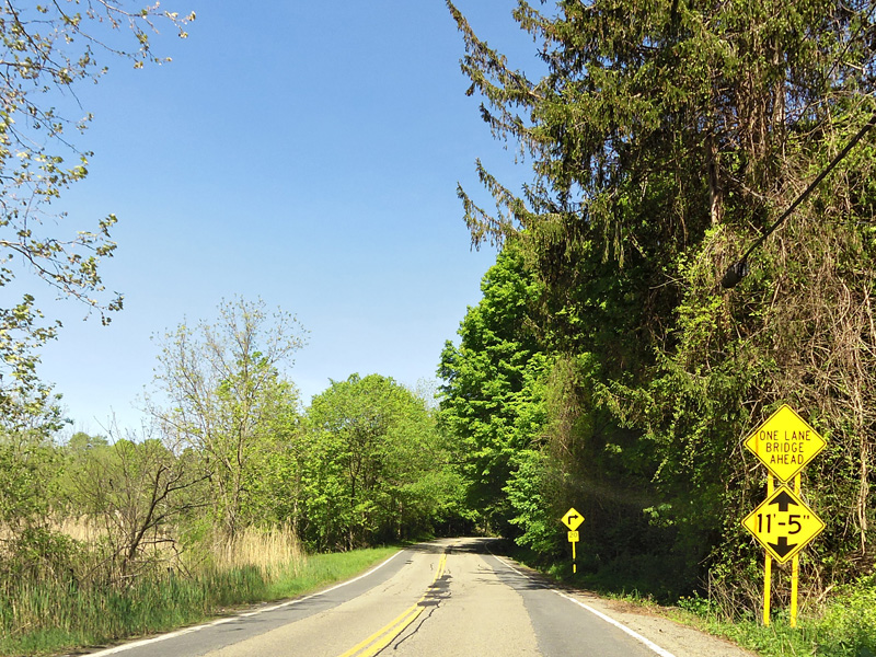 These "One Lane Bridge" signs were found along NY 164. They have all been replaced with "One Lane Road" signs that more accurately describe the underpasses.