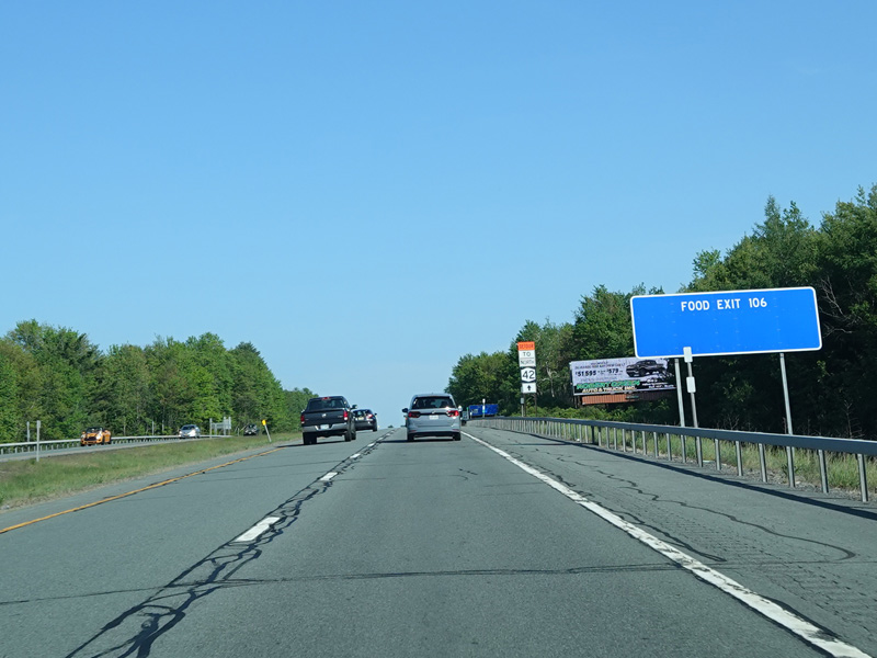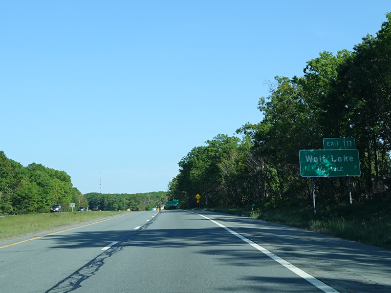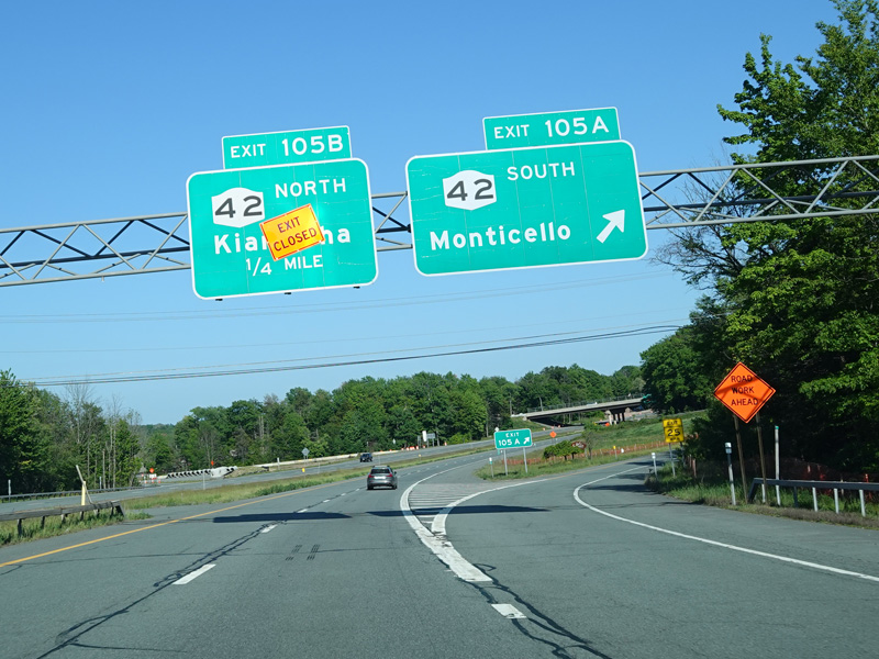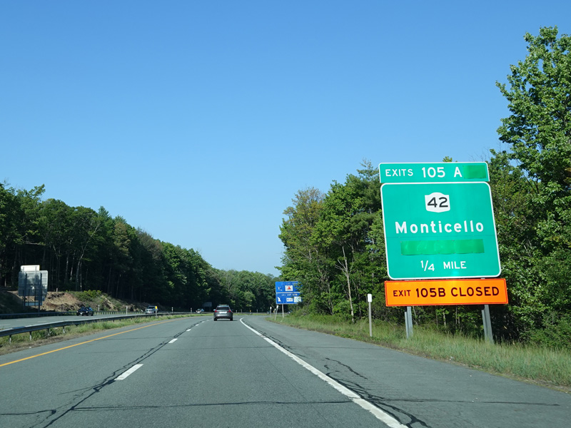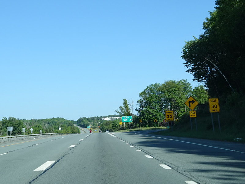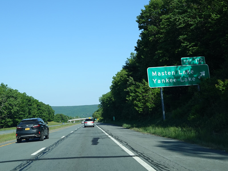 Approaching Wurtsboro, the speed limit drops to 55 MPH. Exit 112 is for Masten Lake and Yankee Lake.