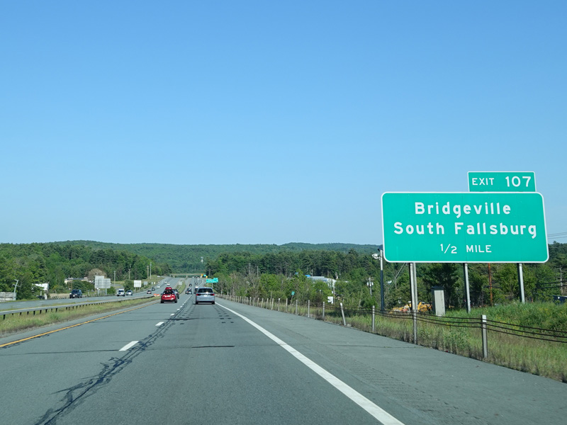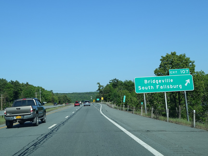 Exit 107 is for Bridgeville and South Fallsburg. It leads to Heiden Road (CR 161), but only the town names are posted.