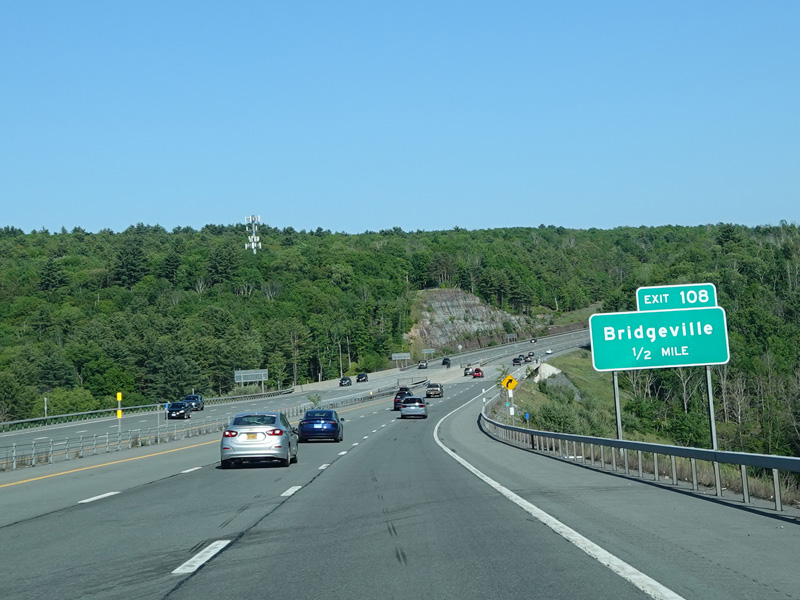 Exit 108 is for Bridgeville. It leads to Bridgeville Road (CR 173), but only the town name is posted.