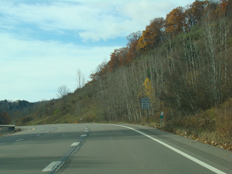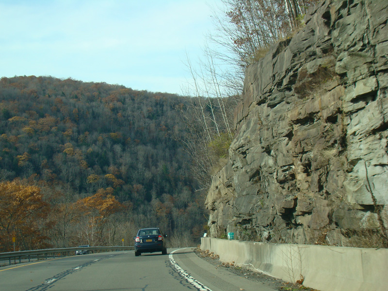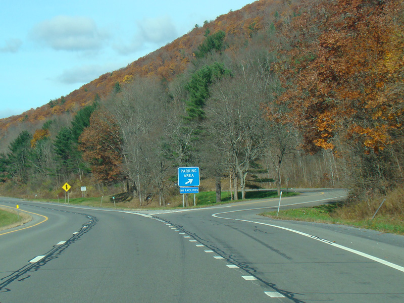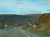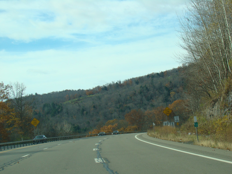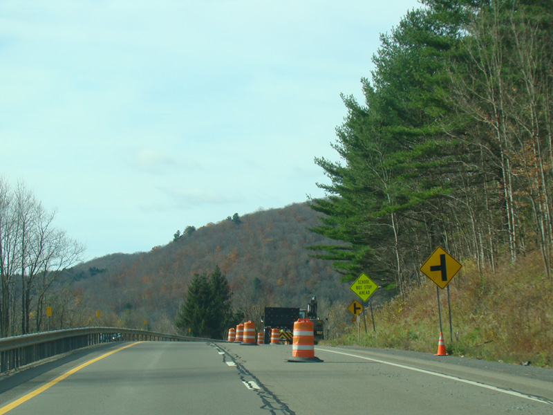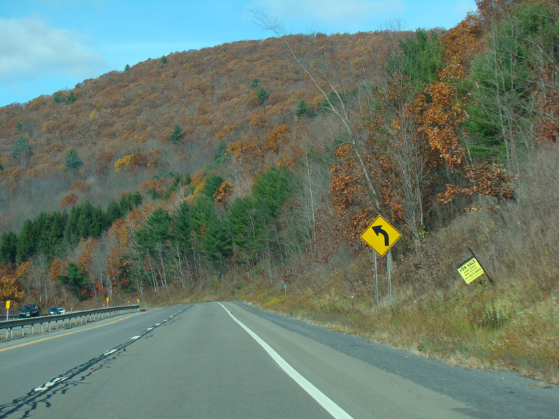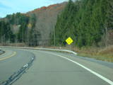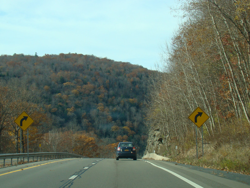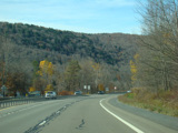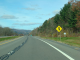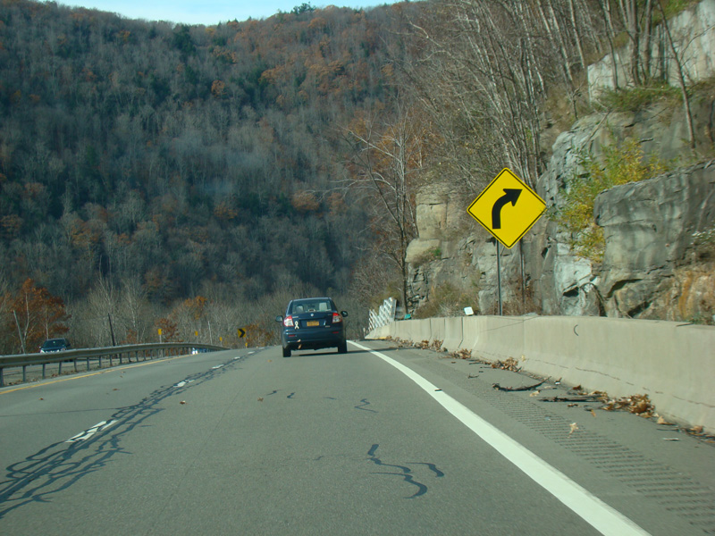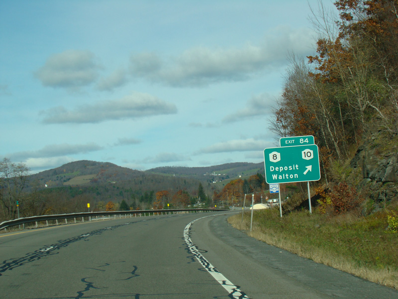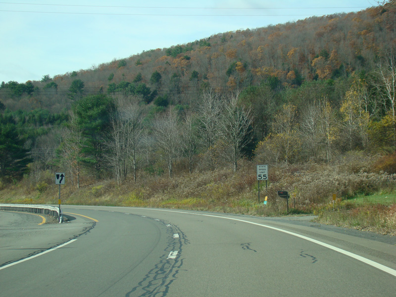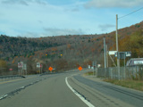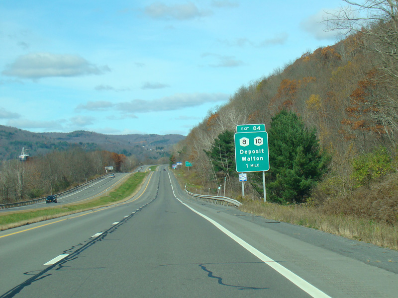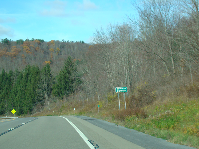 In Hale Eddy, there are some at-grade intersections, including one with a flasher. Silver Lake Road, Rodds Creek Road, and Hungry Hollow Road begin on the right.
