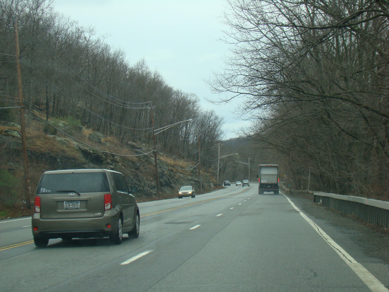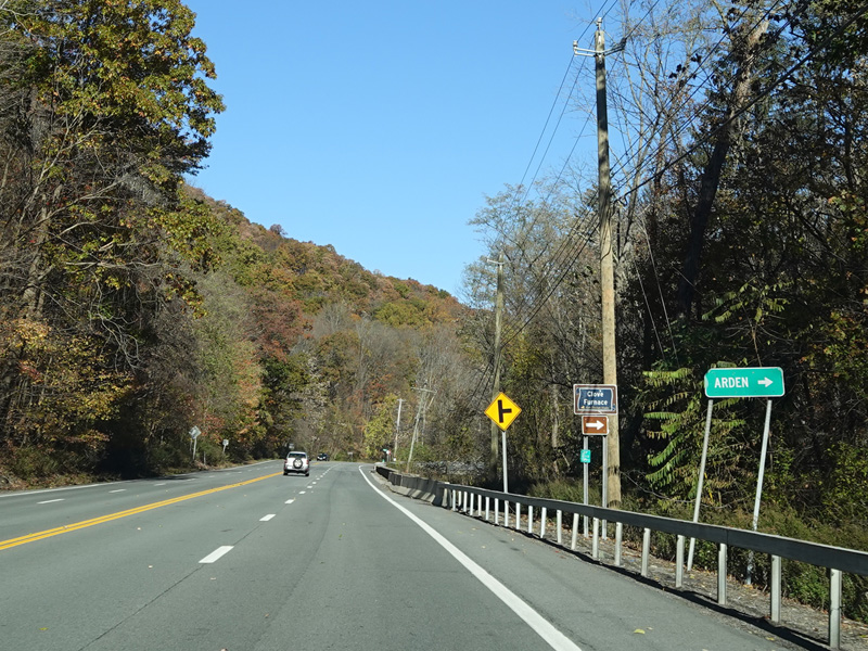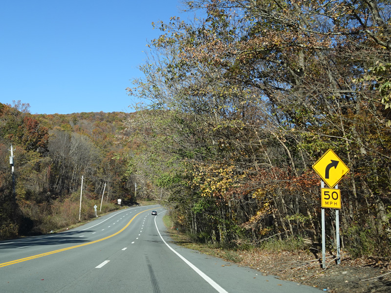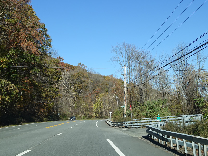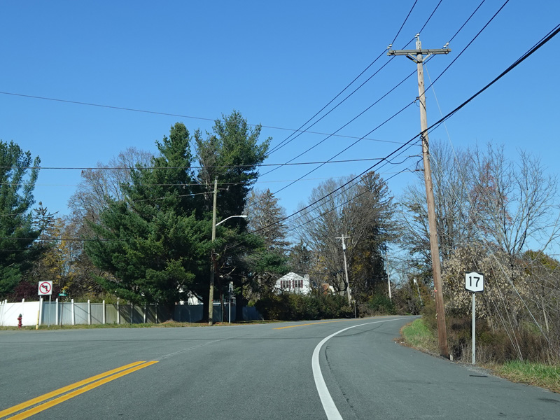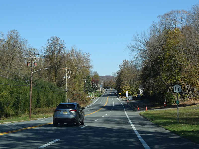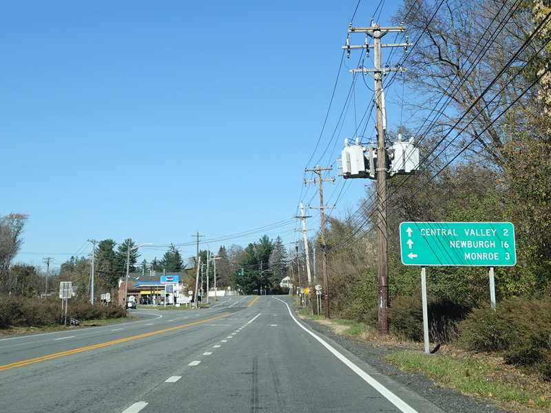 Skipping north to Southfields, Orange Turnpike continues north as a four-lane undivided road. After a short distance, Orange Turnpike splits off to the left to become CR 19. There is no signage for the split. Continue straight ahead to stay on NY 17.