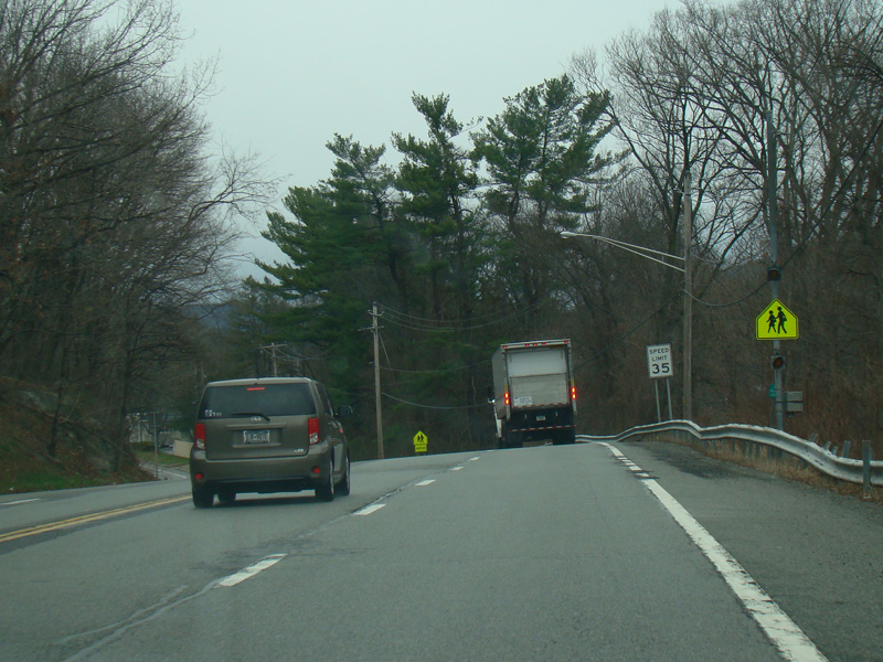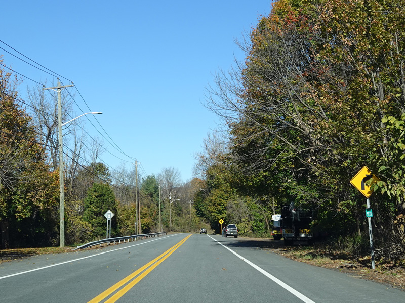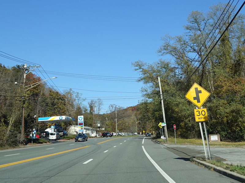 Welcome to Harriman! NY 17 narrows down to two lanes. Here, it is known as Averell Avenue.