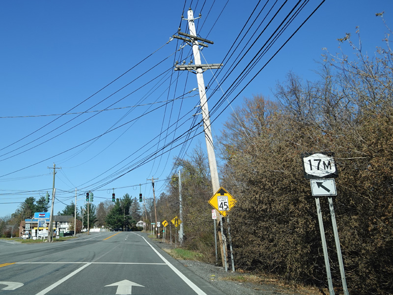 NY 17M begins on the left at a traffic light.
