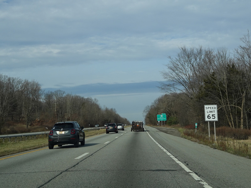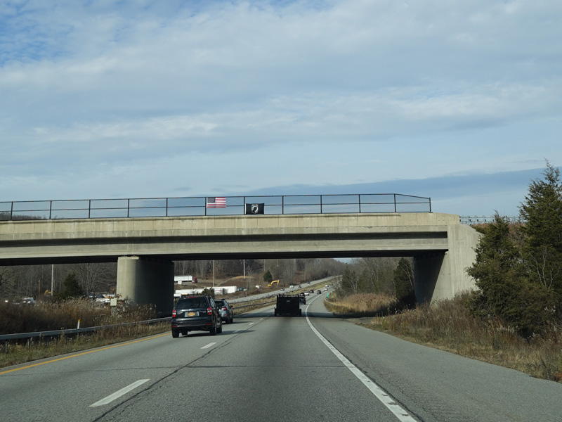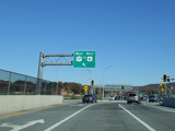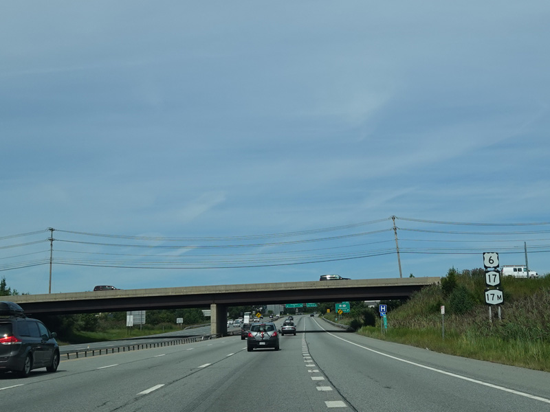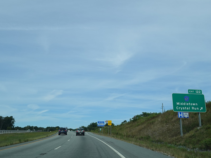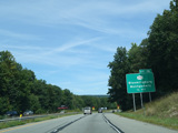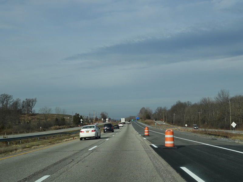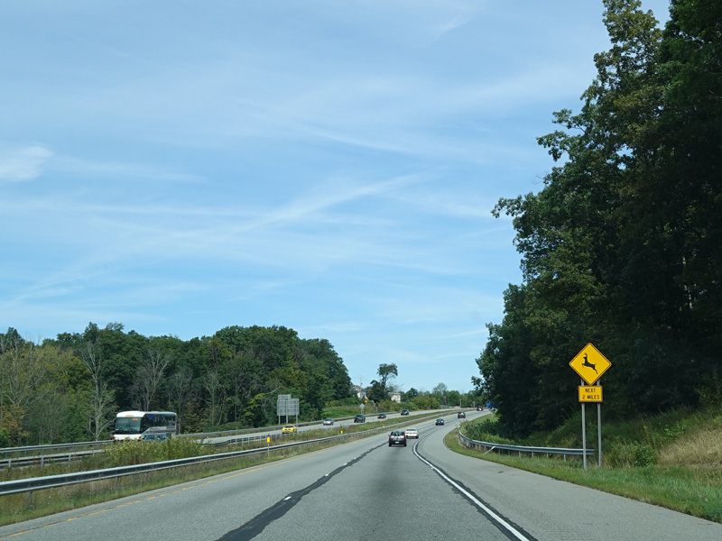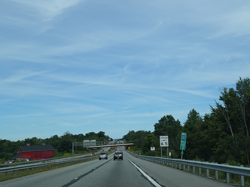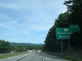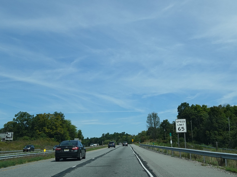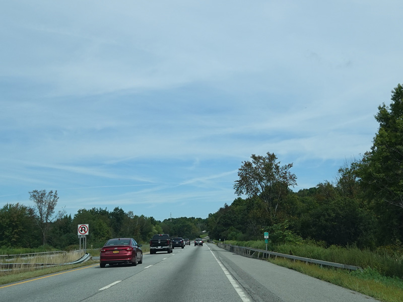 The Quickway takes on the NY 17 designation one exit west of its eastern terminus at the New York Thruway (I-87). US 6 merges in after a short distance. There is a Future I-86 sign to indicate that the Quickway will be redesignated I-86 once it is upgraded to meet interstate standards.