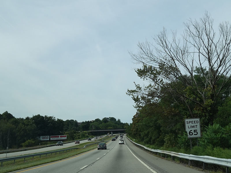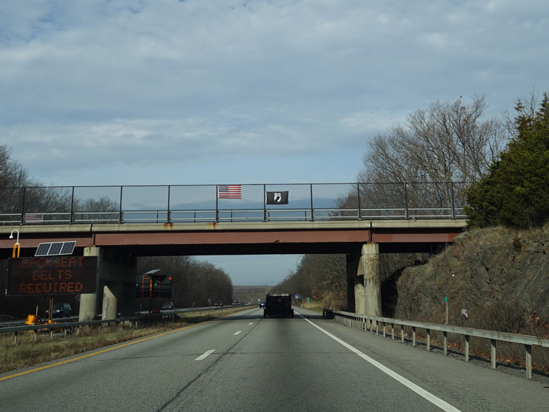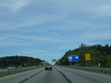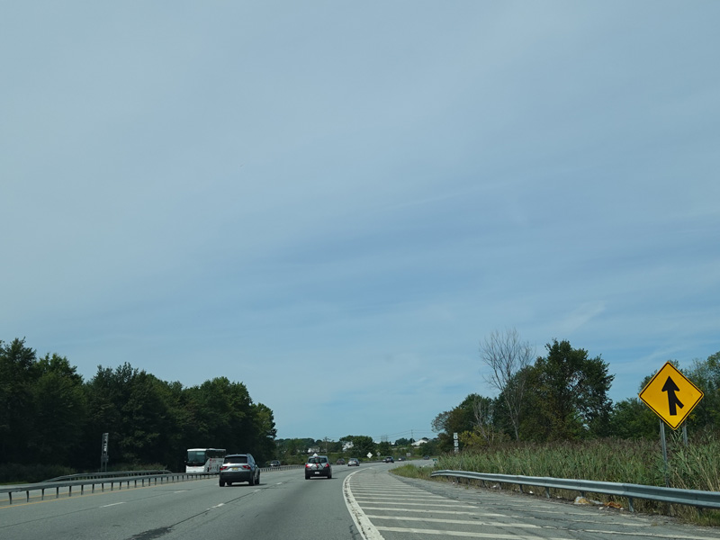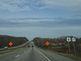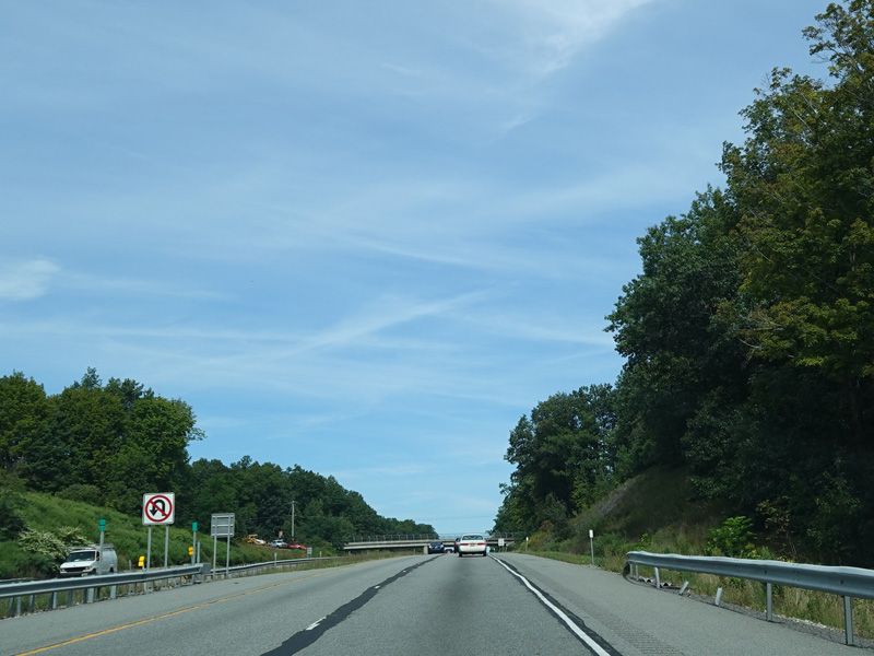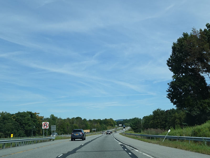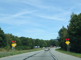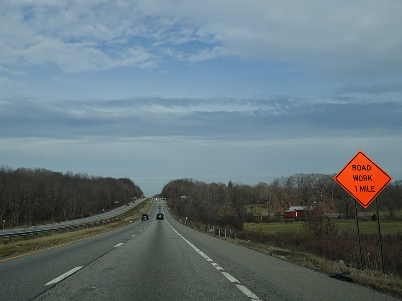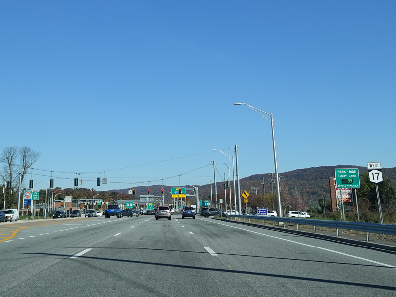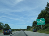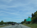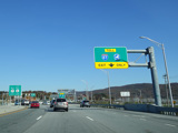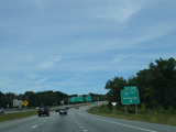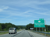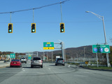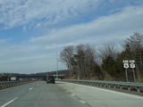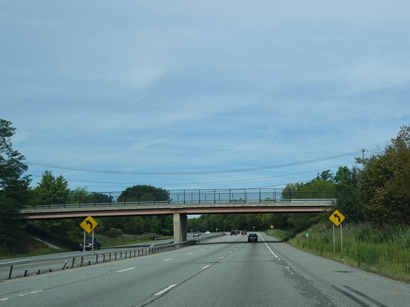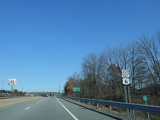 The Quickway takes on the NY 17 designation one exit west of its eastern terminus at the New York Thruway (I-87). US 6 merges in after a short distance. There is a Future I-86 sign to indicate that the Quickway will be redesignated I-86 once it is upgraded to meet interstate standards.