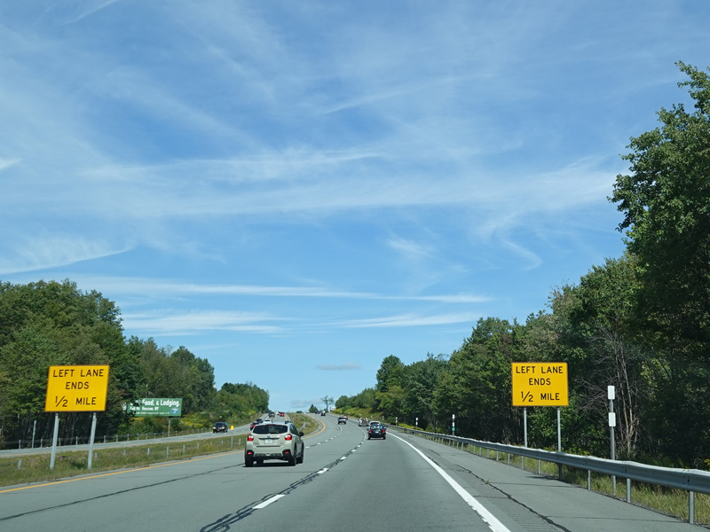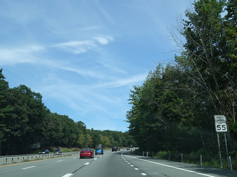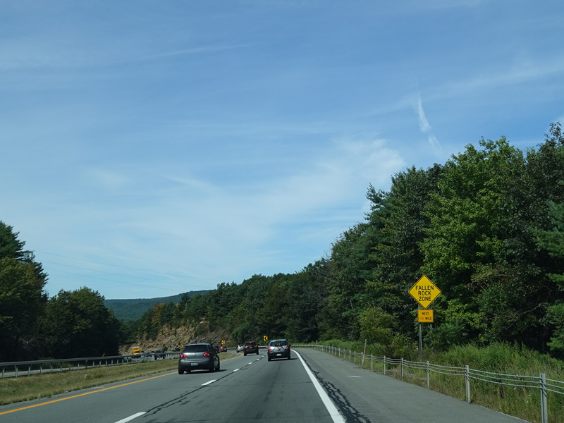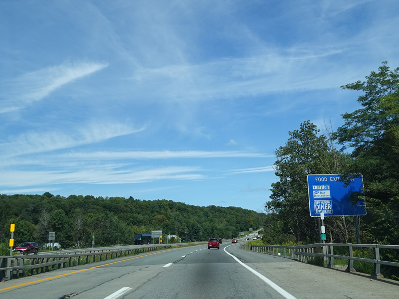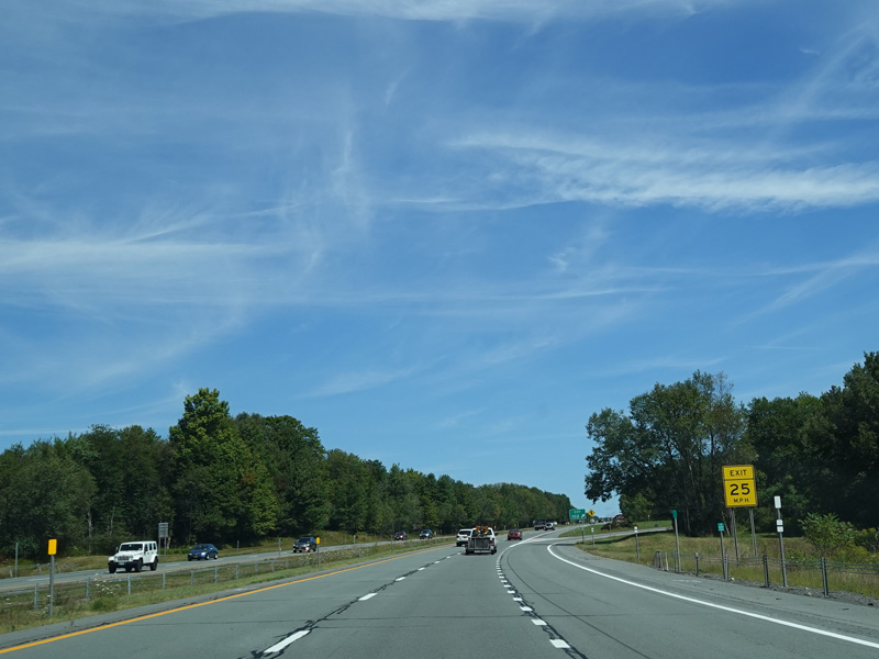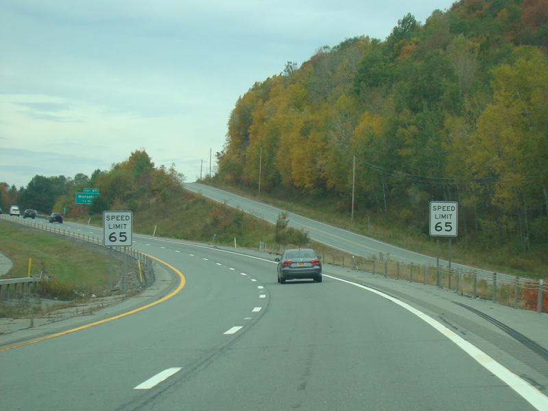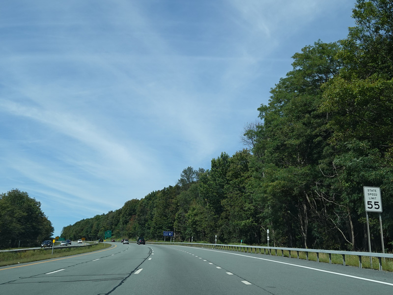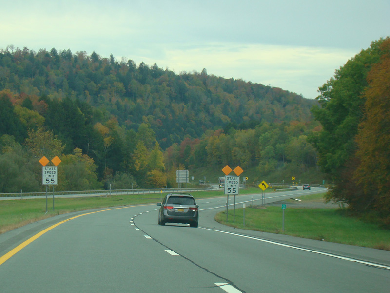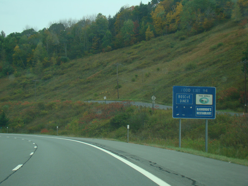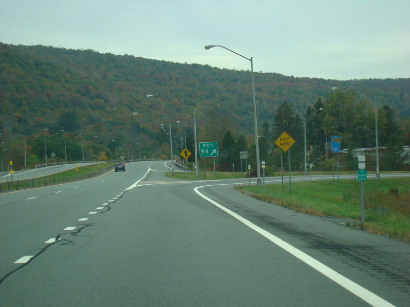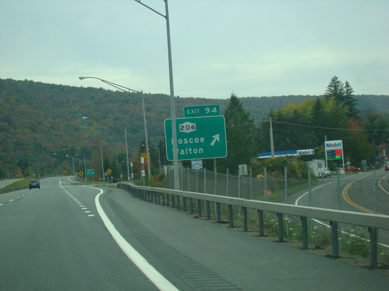 The speed limit drops to 55 MPH in Roscoe. Exit 94 is for NY 206.