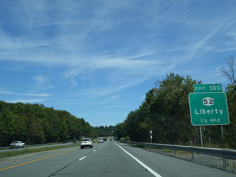 Exit 100A is for NY 52 west and Neversink Road (NY 55).