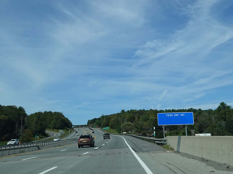 Exit 107 is for Bridgeville and South Fallsburg. It leads to Heiden Road (CR 161), but only the town names are posted.