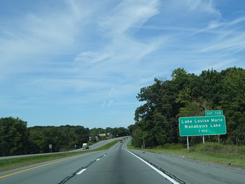 Exit 110 is for Lake Louise Marie and Wanaksink Lake. It leads to Wurtsboro Mountain Road (CR 172), but only the lake names are posted.