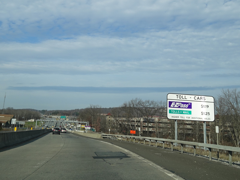 These pictures show exit 131 before the conversion to cashless tolling. There was a tollbooth with lanes for vehicles coming from both directions of the Thruway, and the exit number for exit 131 was not posted when travelling in this direction.