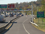 These pictures show the ramp for exit 131 as it appeared prior to the reconstruction of the interchange. The overhead signs that were presented have been taken down and replaced with ground-mounted signs.