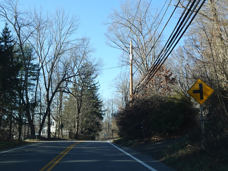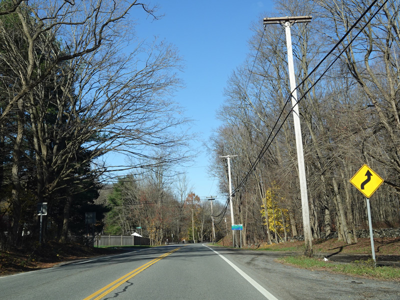 Pound Ridge Road ends here at Old Post Road (NY 22). Bear right to go north. Bear left to go south and to stay on NY 172.