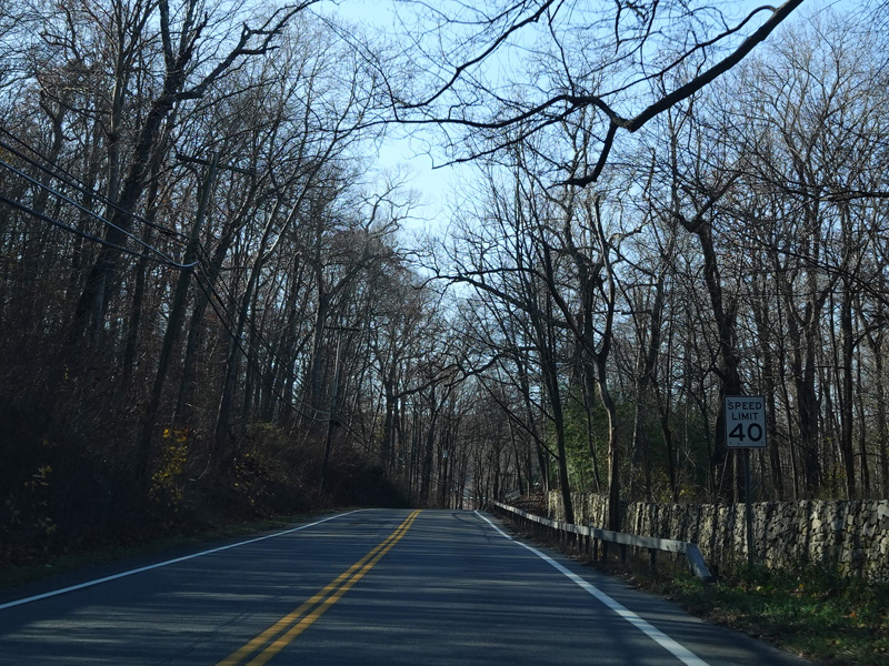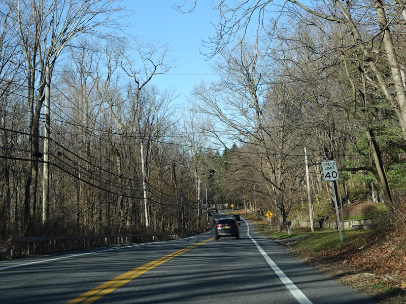 Pound Ridge Road begins at Westchester Avenue (NY 137) and runs west as a two-lane undivided road.