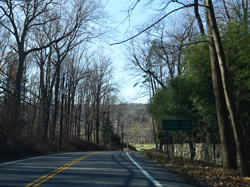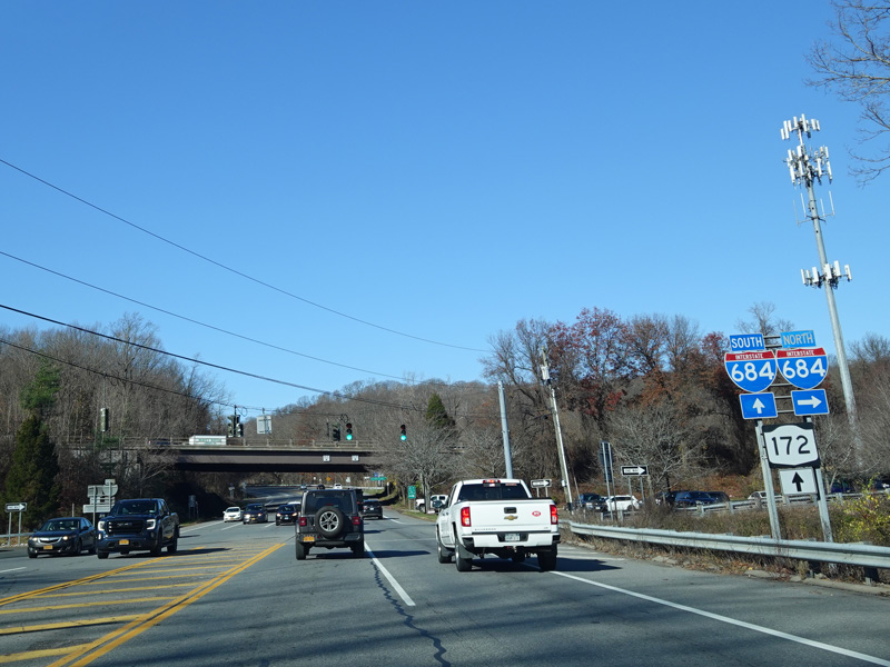 NY 172 splits off from Old Post Road (NY 22) onto South Bedford Road, which runs west as a two-lane undivided road. There is a traffic light at Succabone Road and Fox Lane.