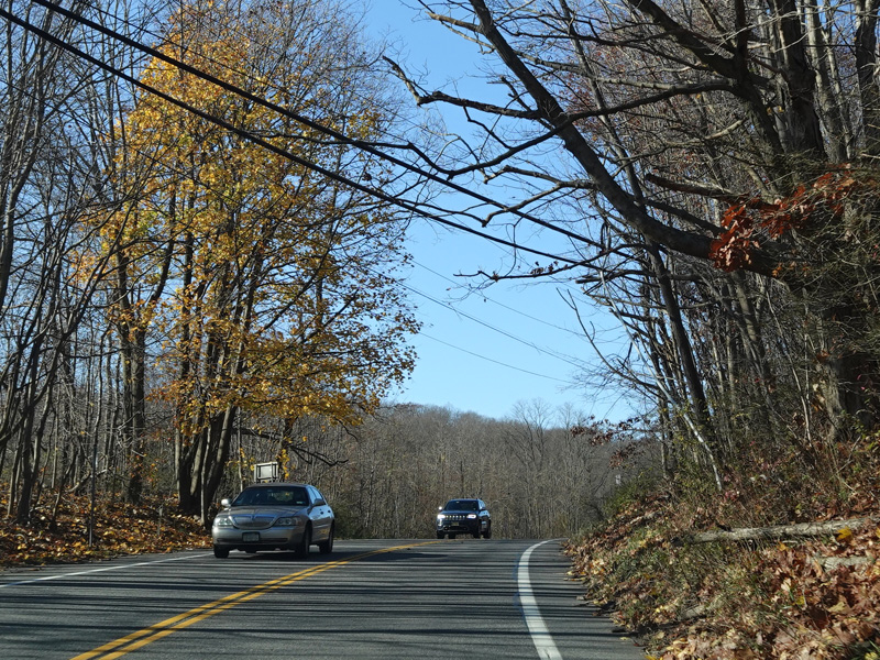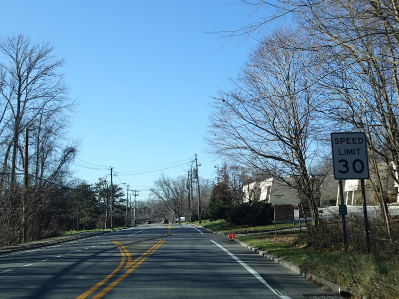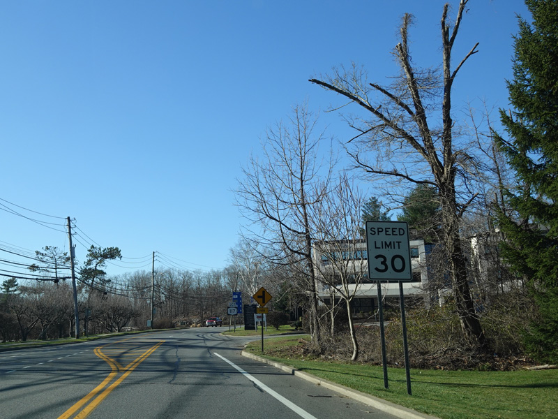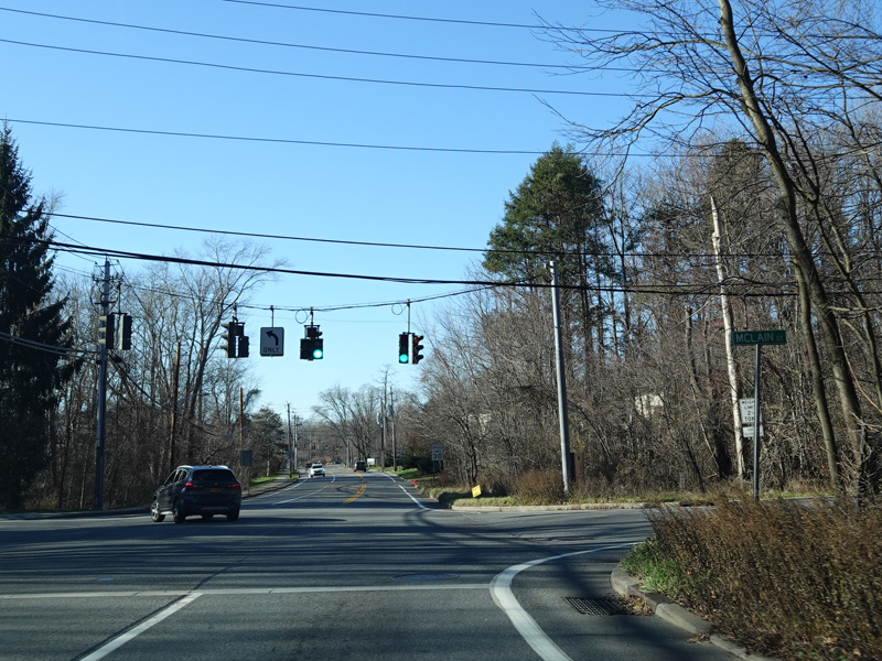 Long Ridge Road (CR 3) begins on the left at a traffic light.