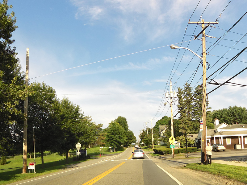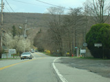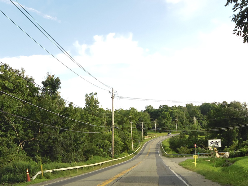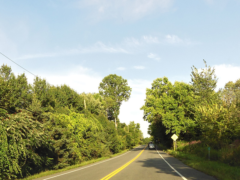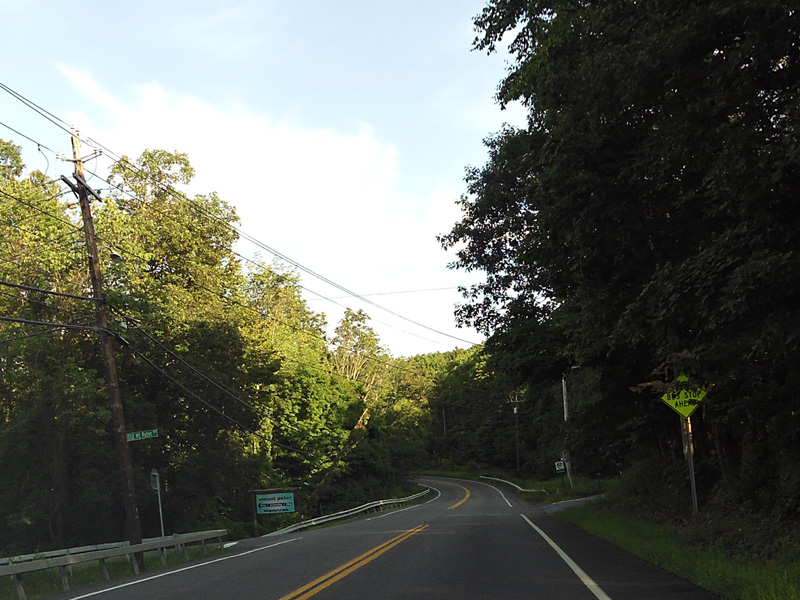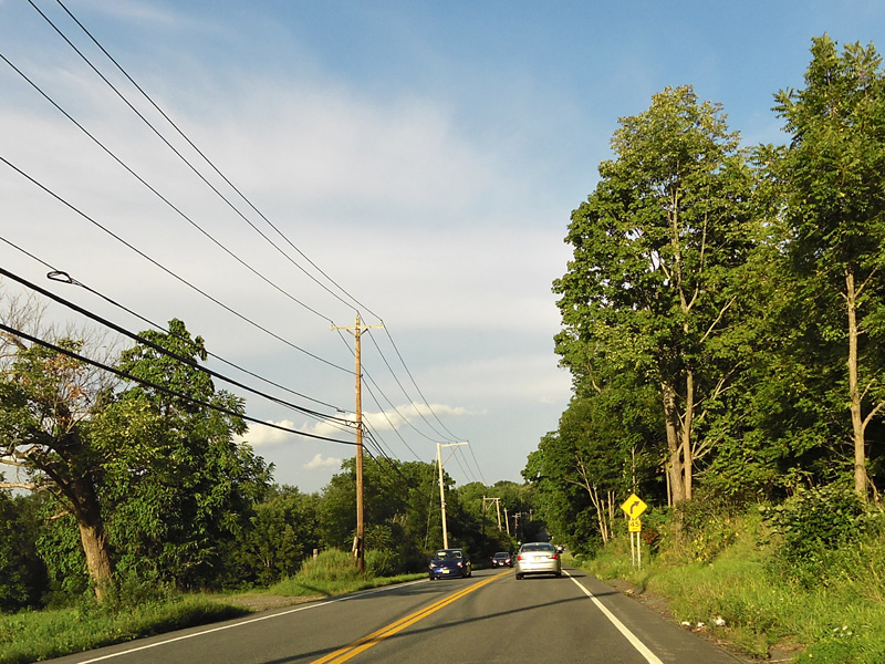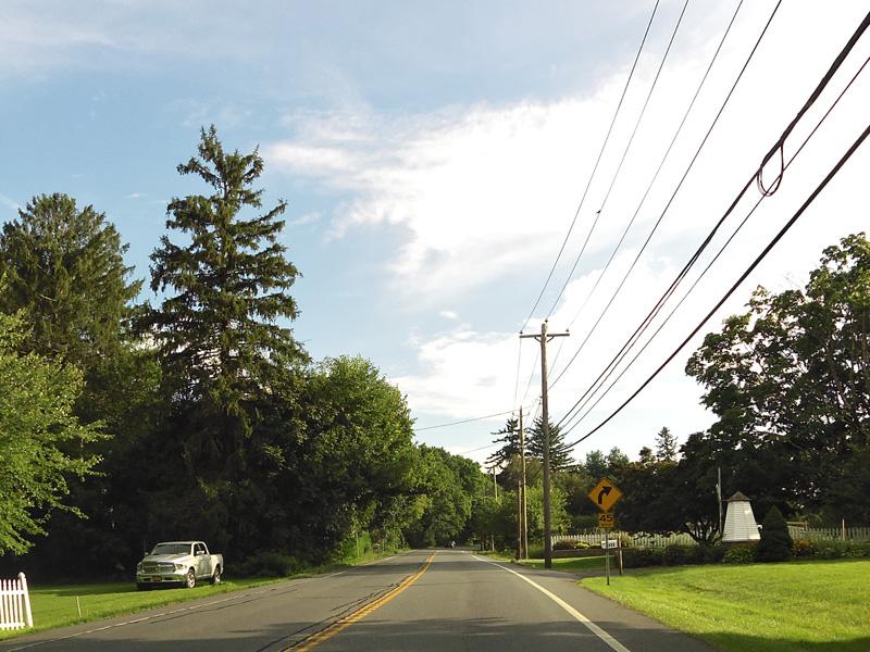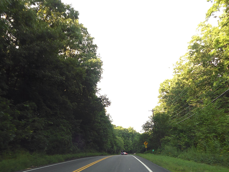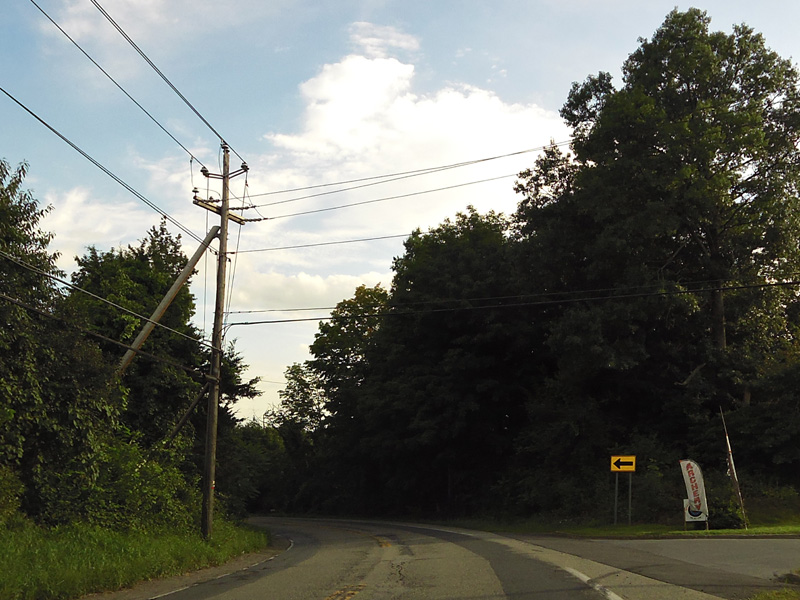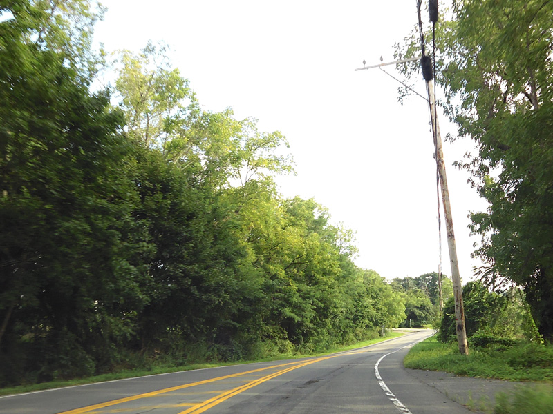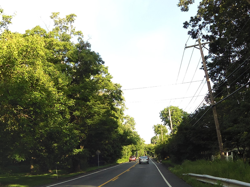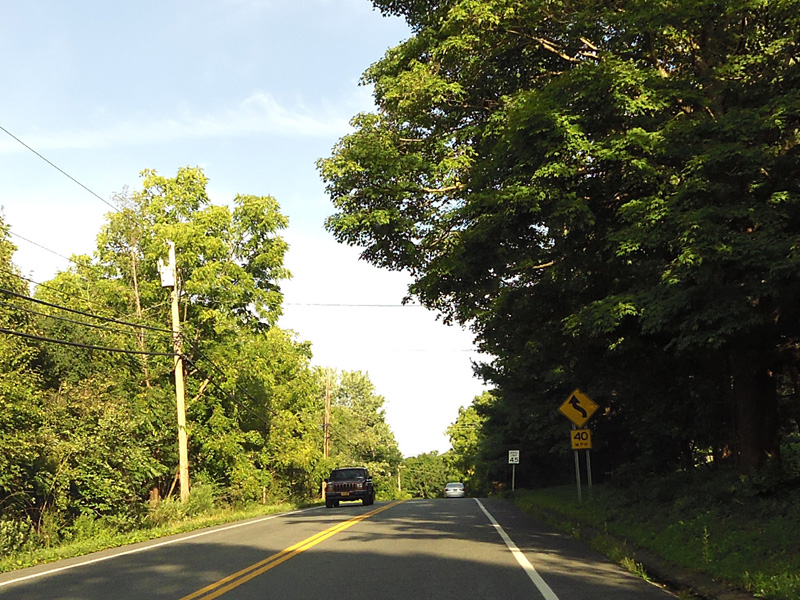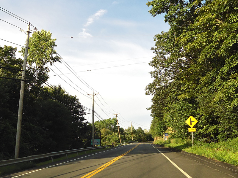 Dutch Hollow Road (CR 5) begins on the left. There is no route signage here.
