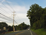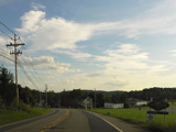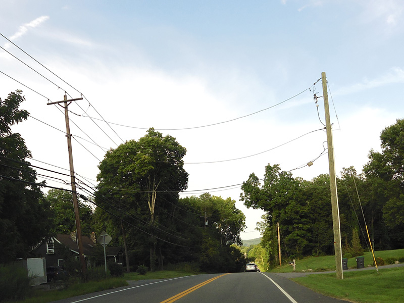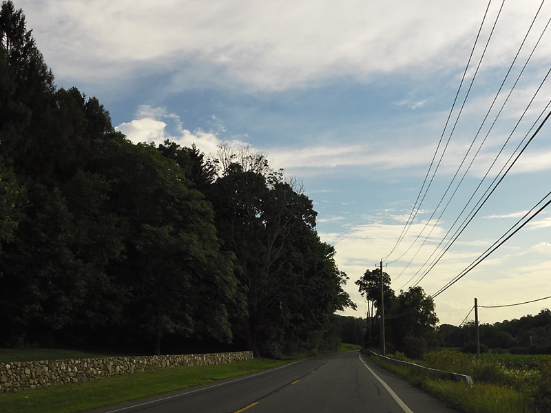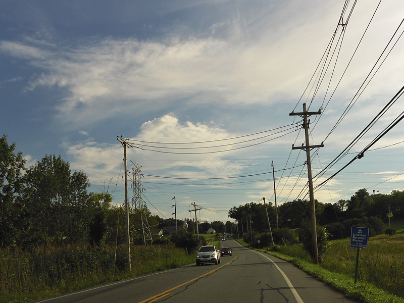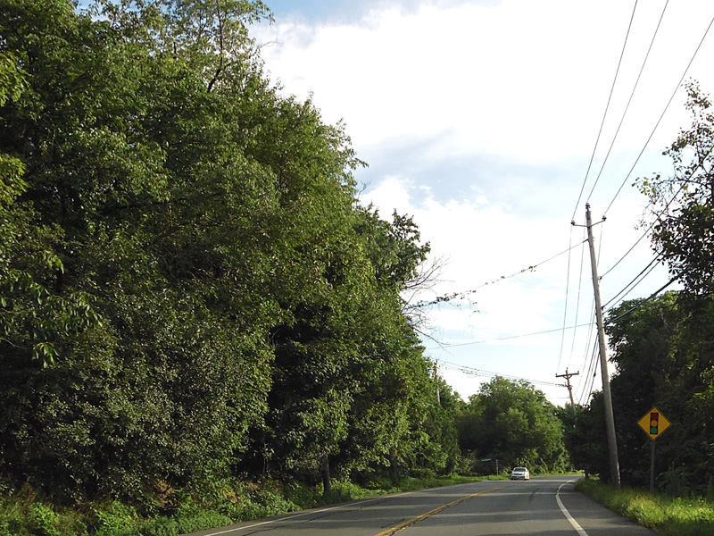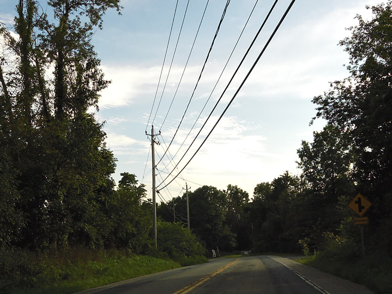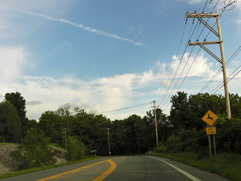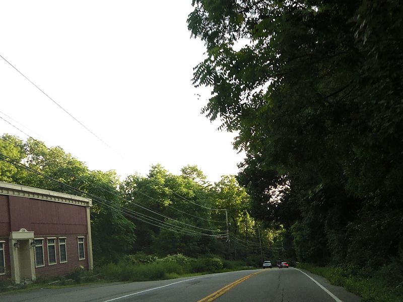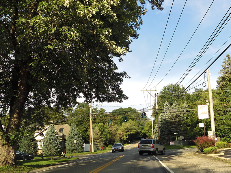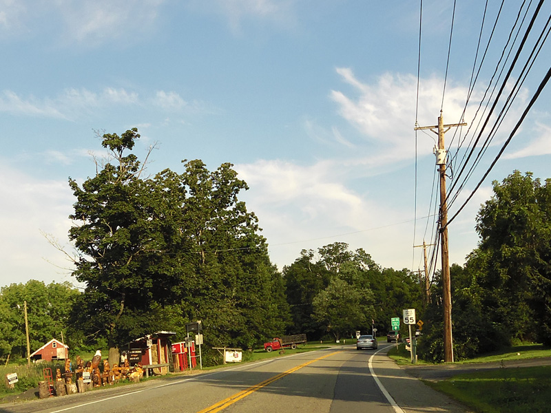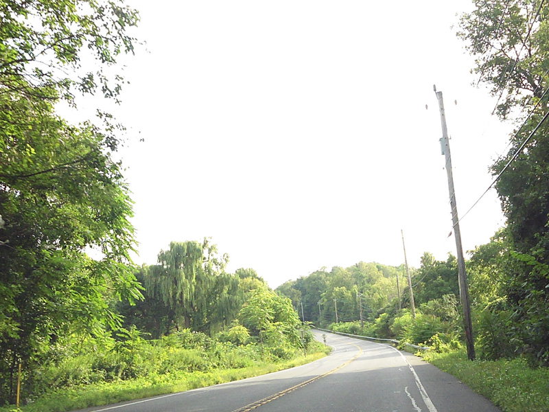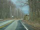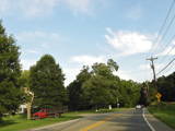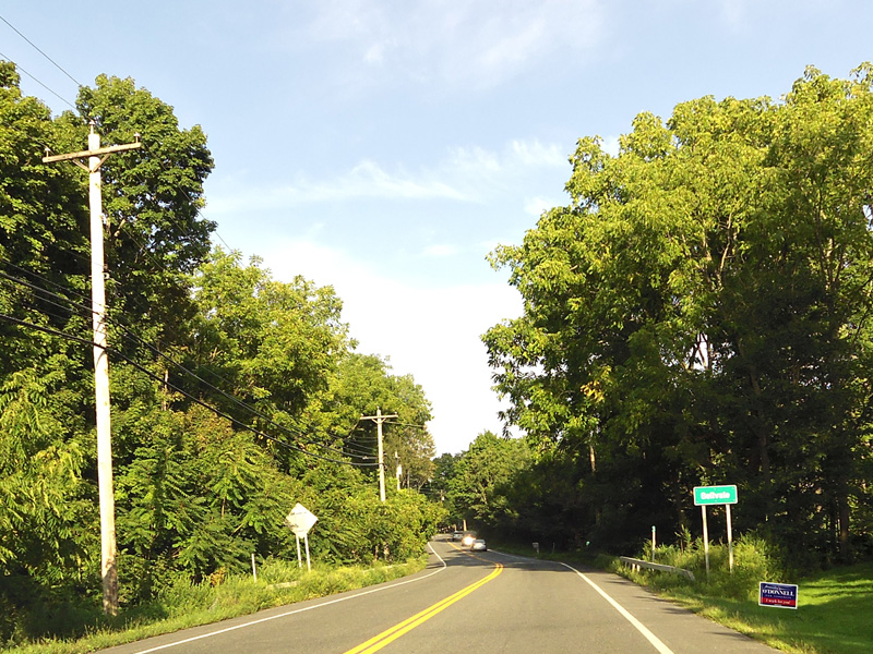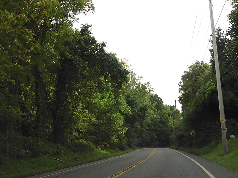 Dutch Hollow Road (CR 5) begins on the left. There is no route signage here.