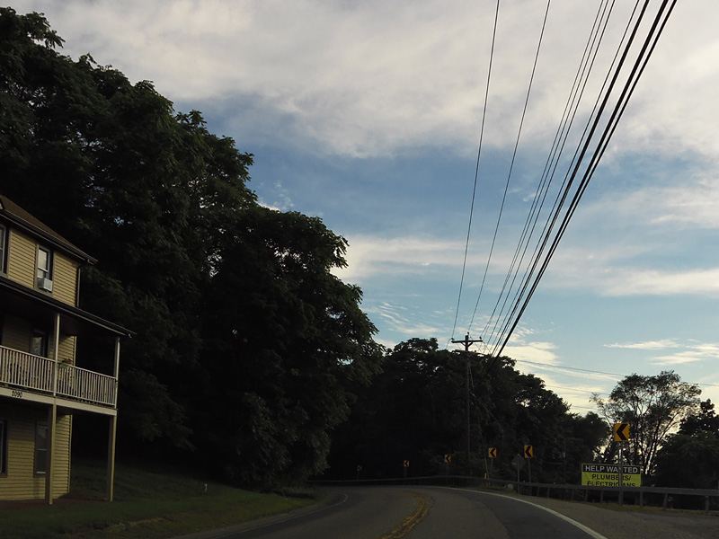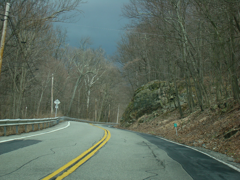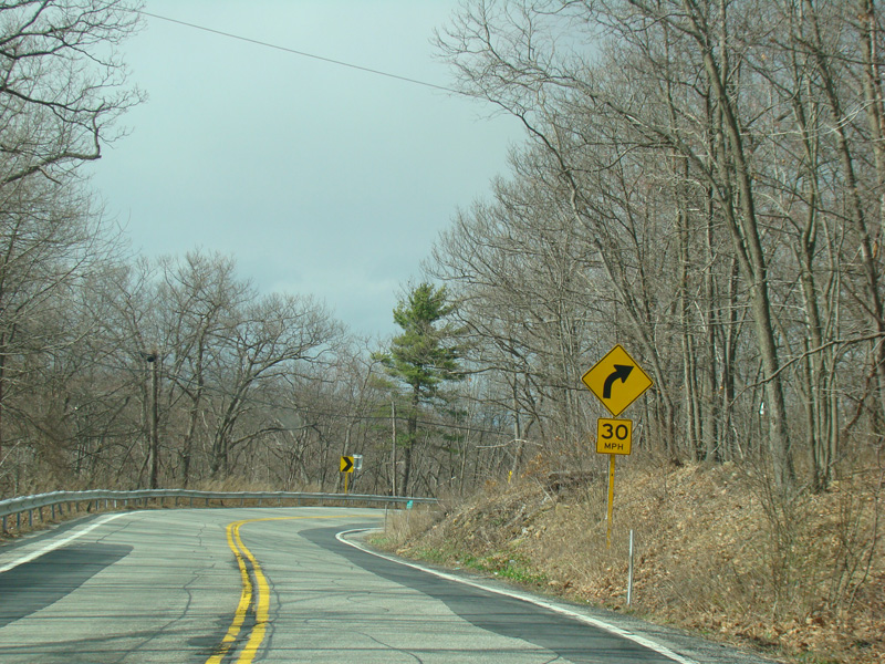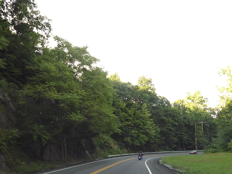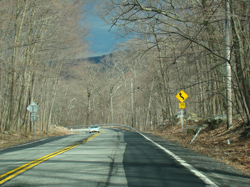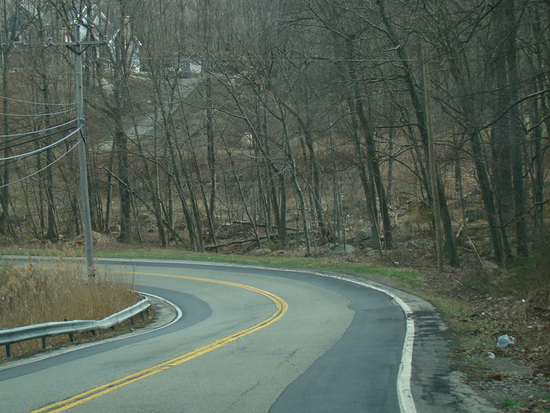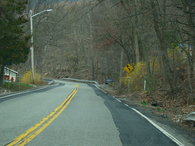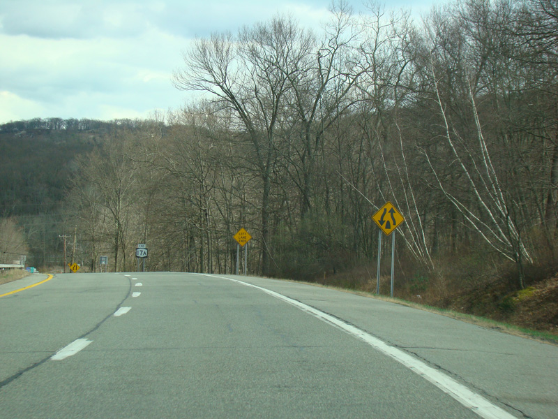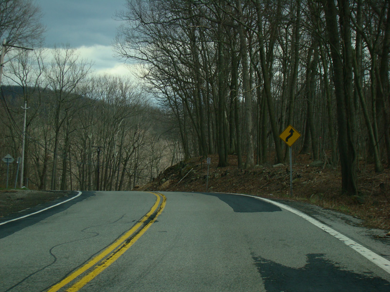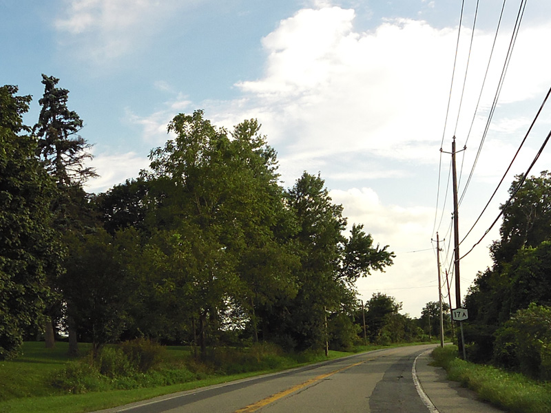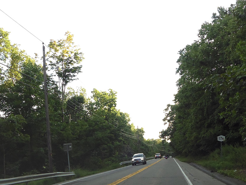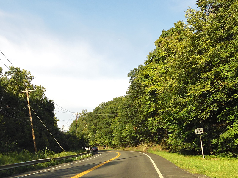 As NY 17A goes downhill, it curves to the north and then back to the south.