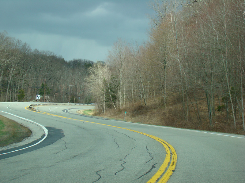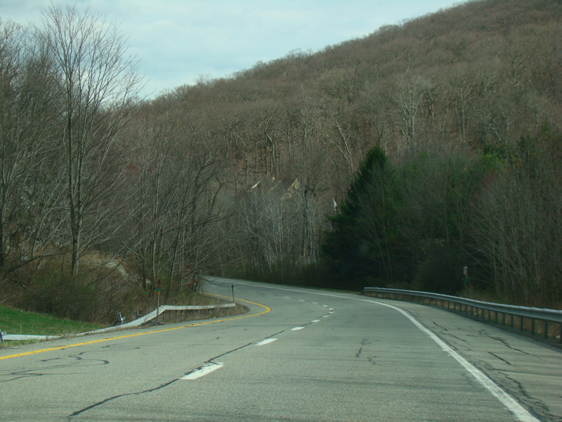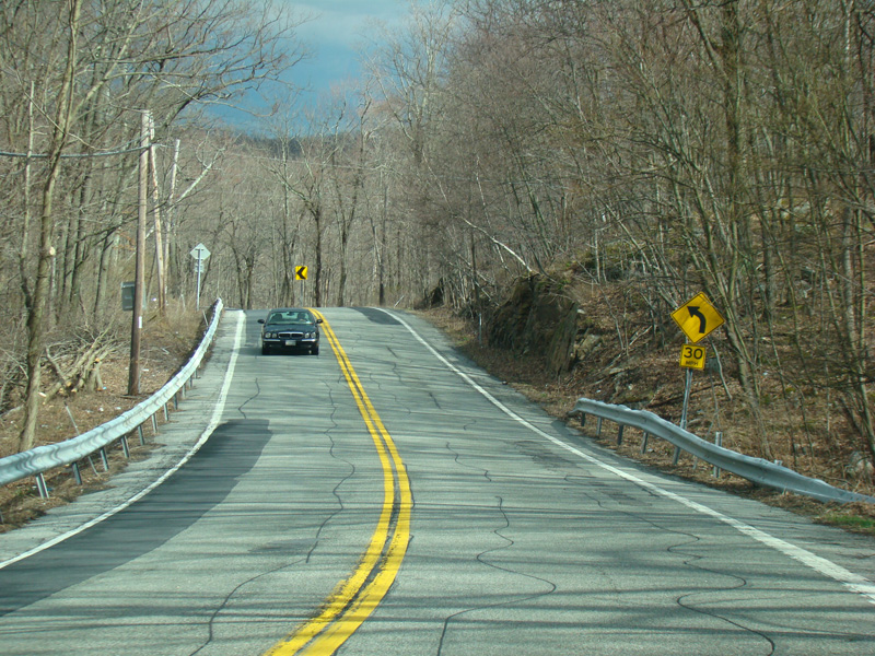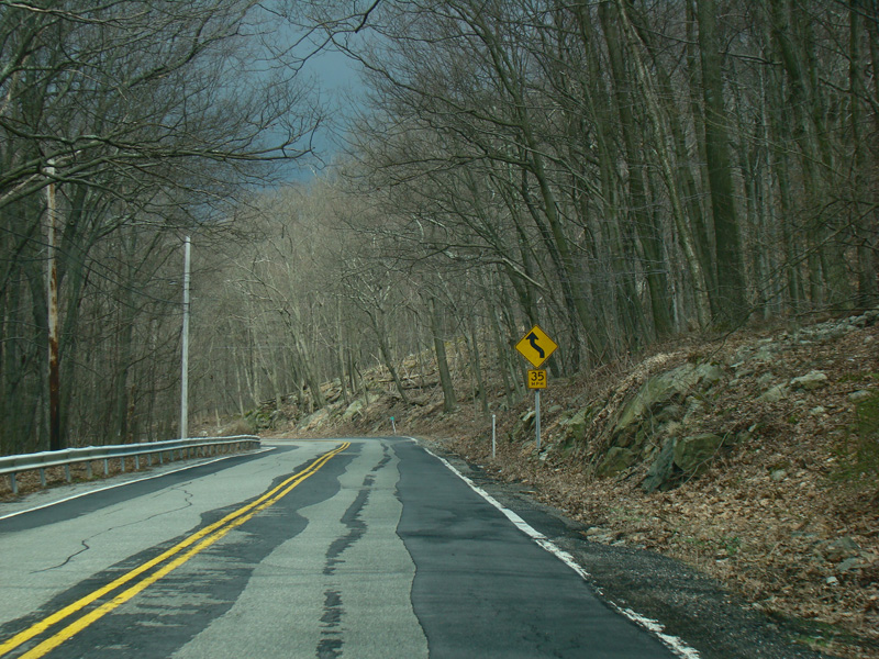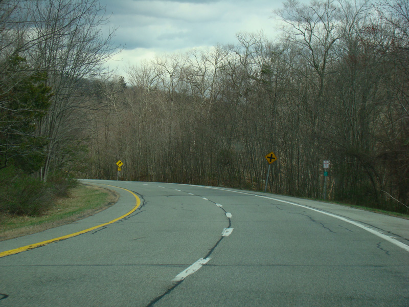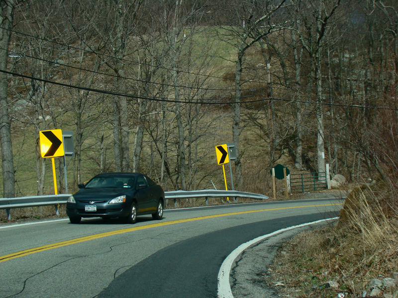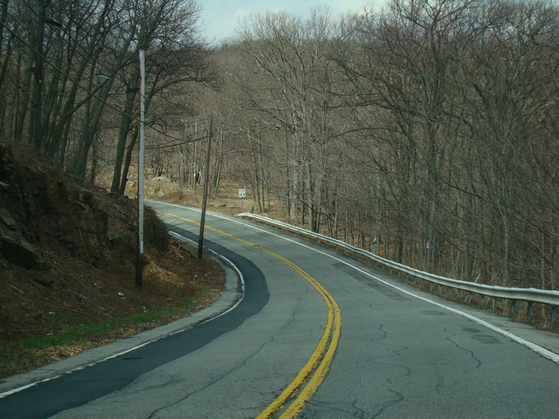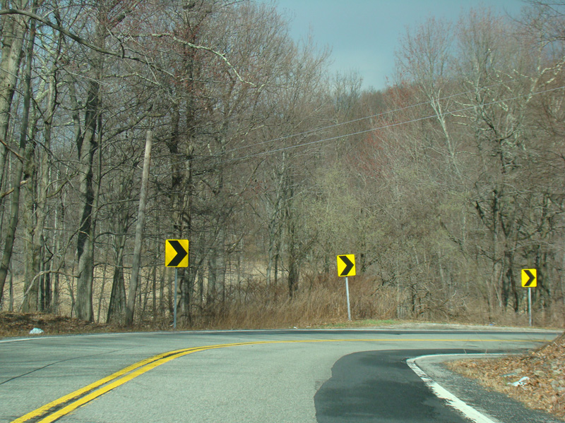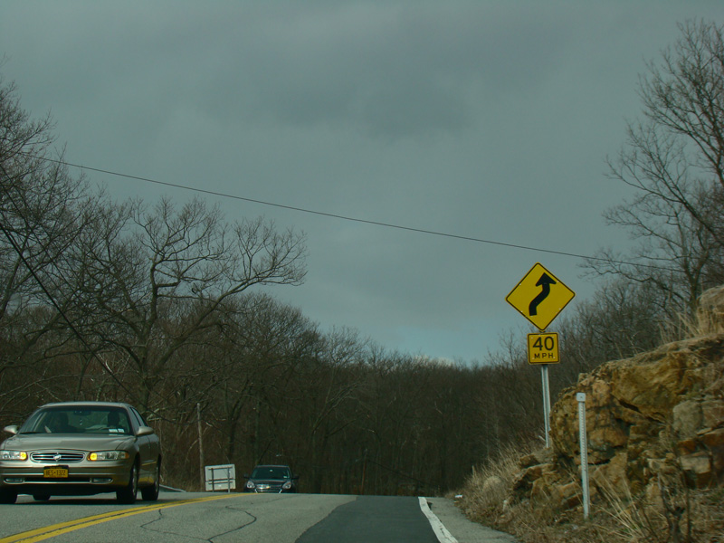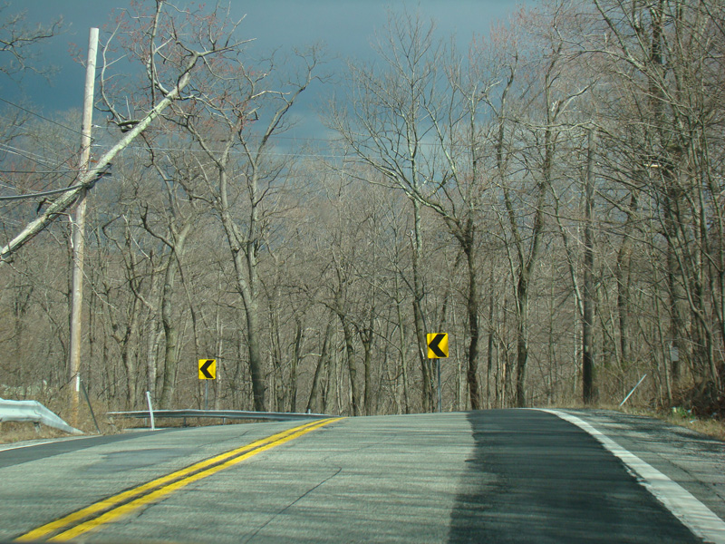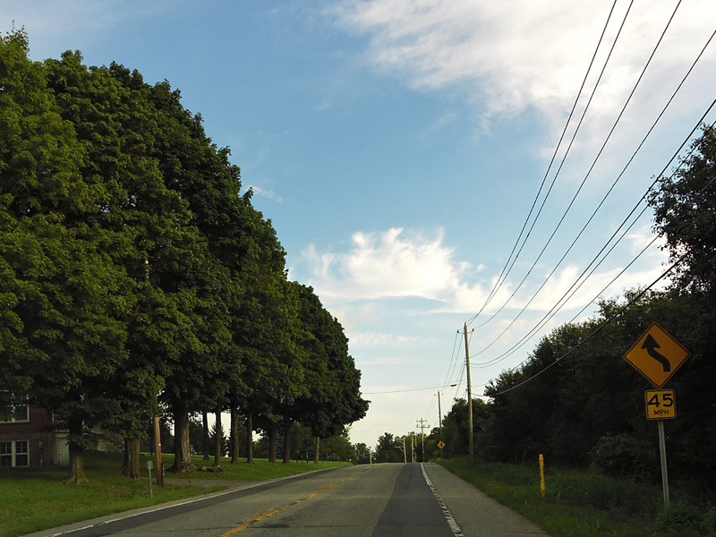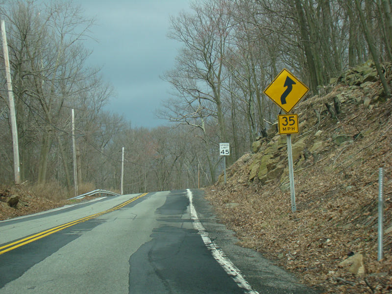 As NY 17A goes downhill, it curves to the north and then back to the south.