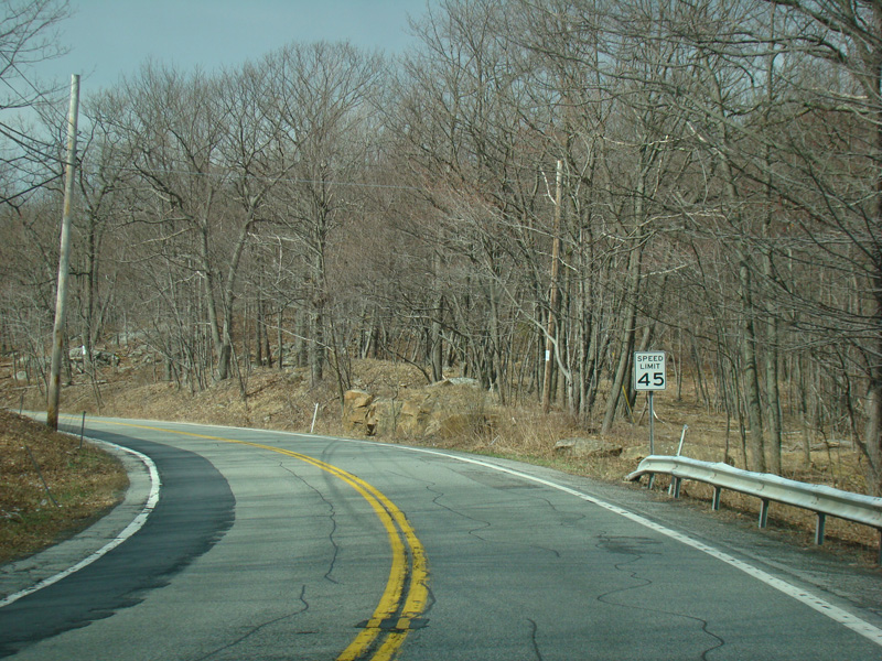 NY 17A widens to become a four-lane divided highway, and the speed limit rises to 55 MPH. Turn right onto Long Meadow Road for the Sterling Forest State Park Visitor Center.